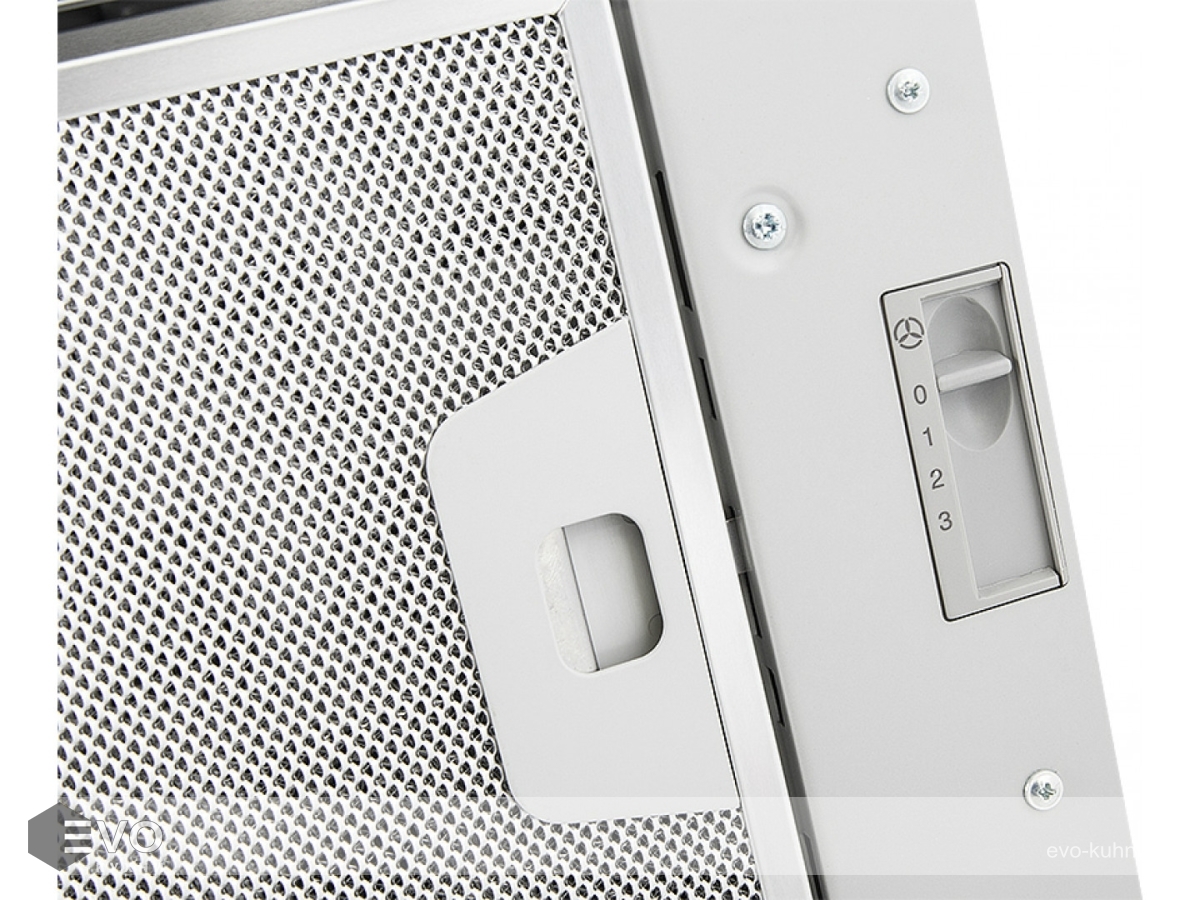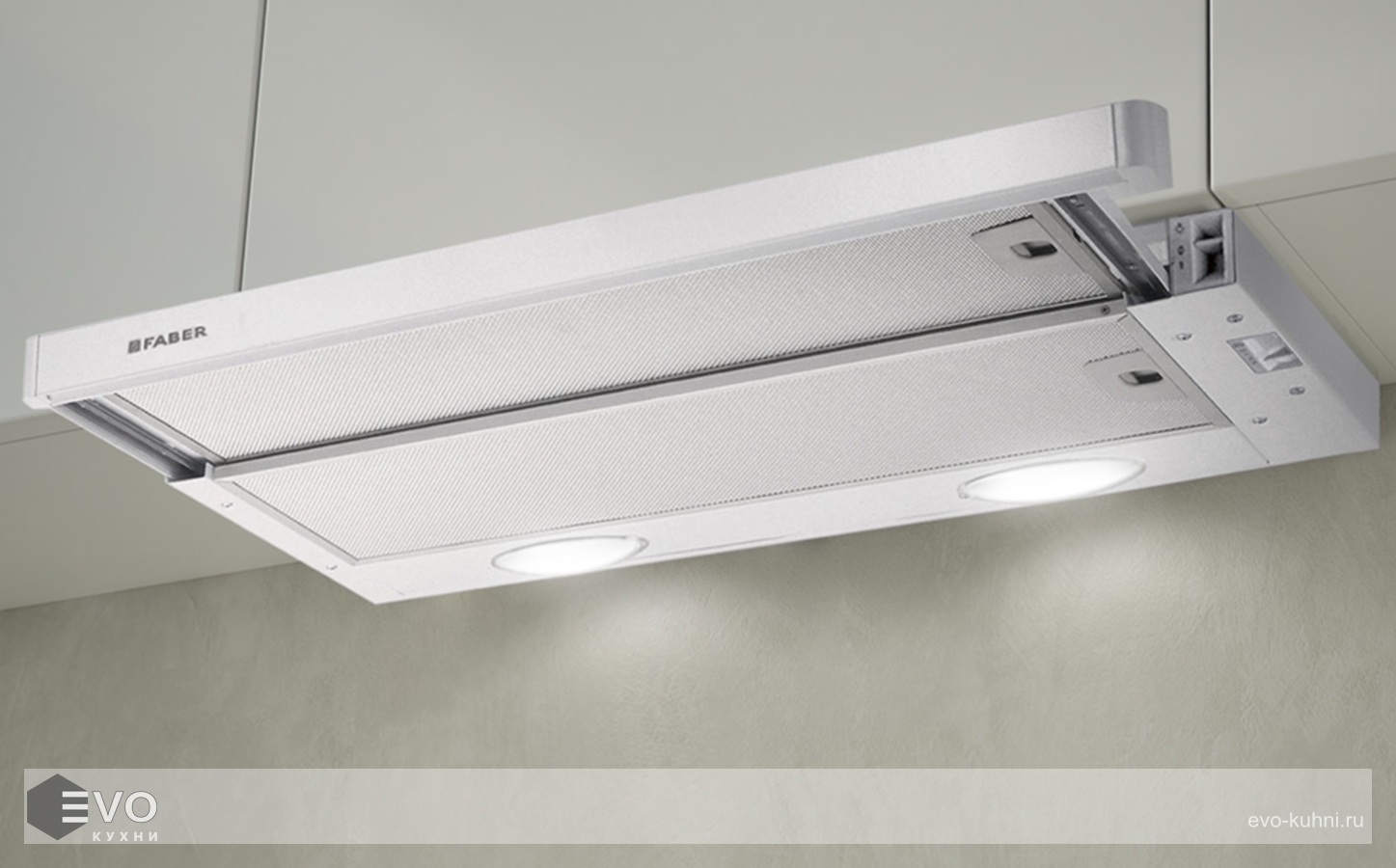 Выдвижная вытяжка FABER FLEXA AM/X A50 – предназначена для встраивания в подвесной шкаф, что экономит место на кухне. Модель работает в режимах отвода и рециркуляции, что подразумевает установку угольного фильтра, который не входит в комплект поставки. Светодиодные лампы равномерно освещают рабочую поверхность и требуют замены. Вытяжкой легко управлять посредством двух слайдерных (ползунковых) переключателей.