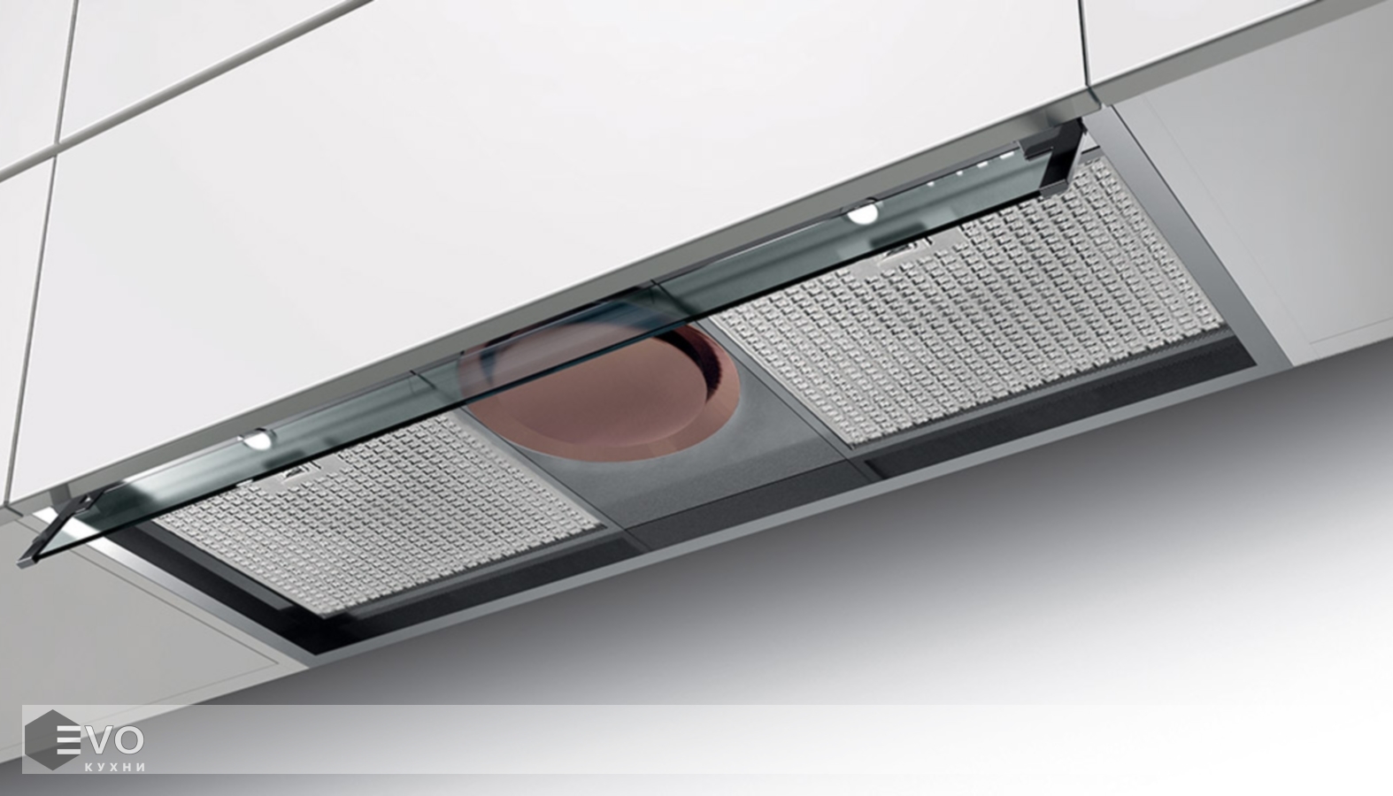 Полновстраиваемая вытяжка FABER ILMA X A90 – встраиваемая в подвесной шкаф вытяжка с системой Steam-Off. Модель не только втягивает воздух но и создает обратный воздушный поток, который ускоряет и более равномерно распределяет пар. Таким образом, данный принцип работы позволяет избежать образование конденсата как на поверхности корпуса устройства, так и на окружающей мебели. К дополнительным преимуществам следует отнести наличие подсветки варочной зоны и интенсивного режима для быстрого устранения копоти и испарений.