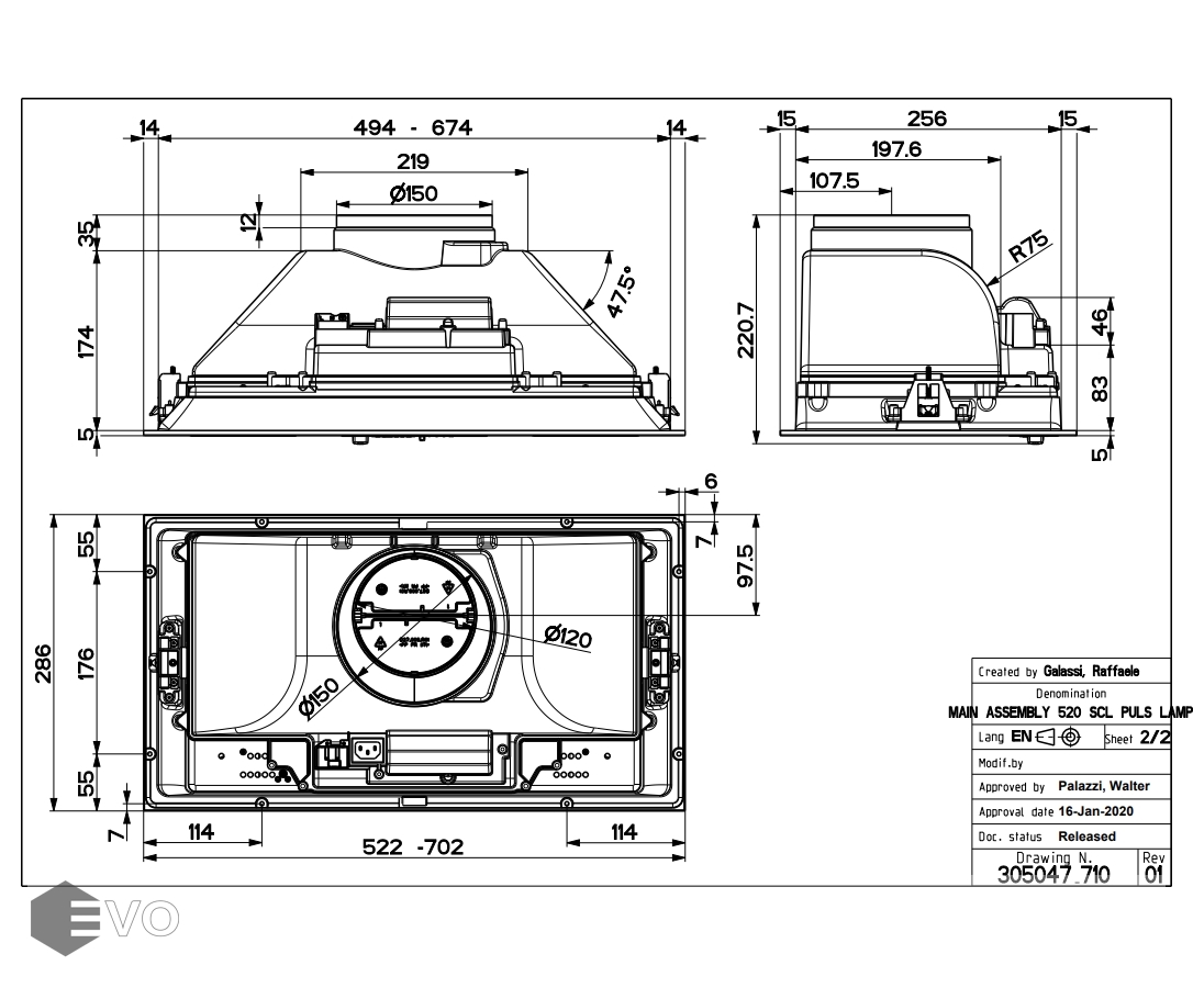 Тип вытяжки : | Встраиваемая (в шкаф) |