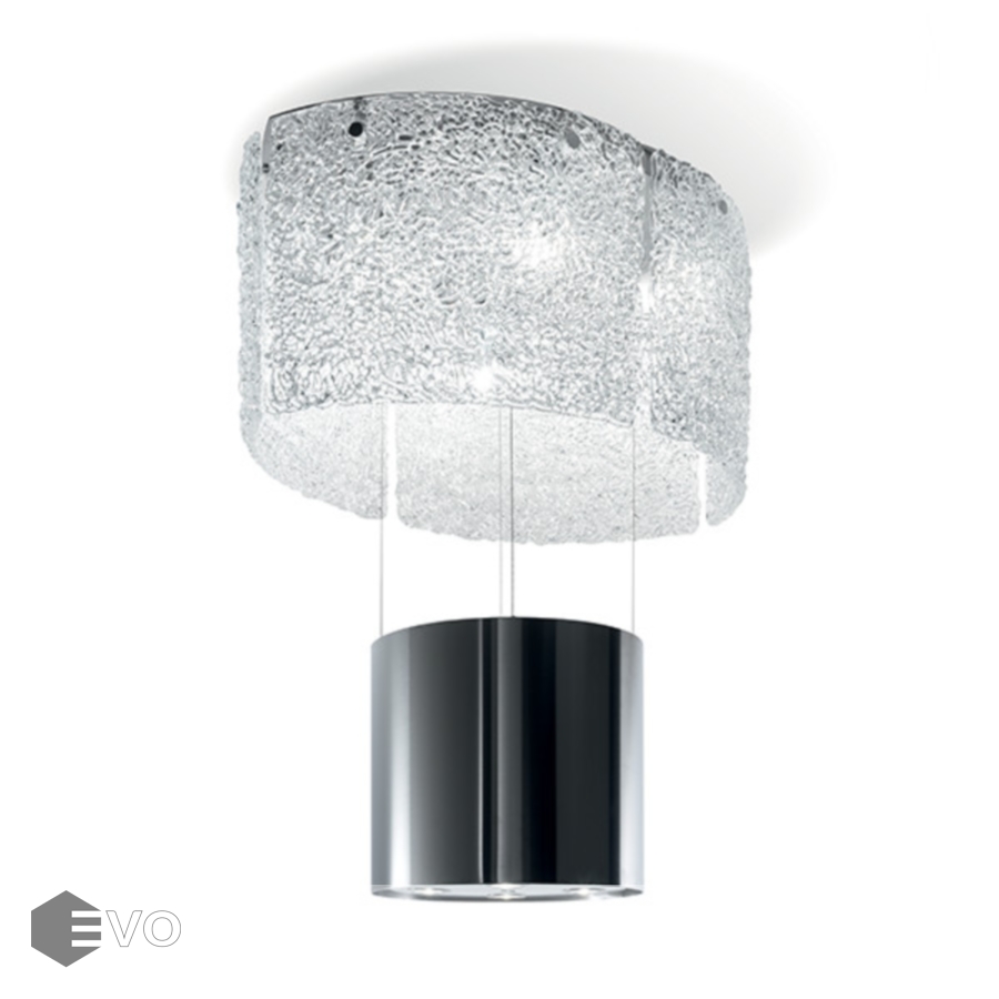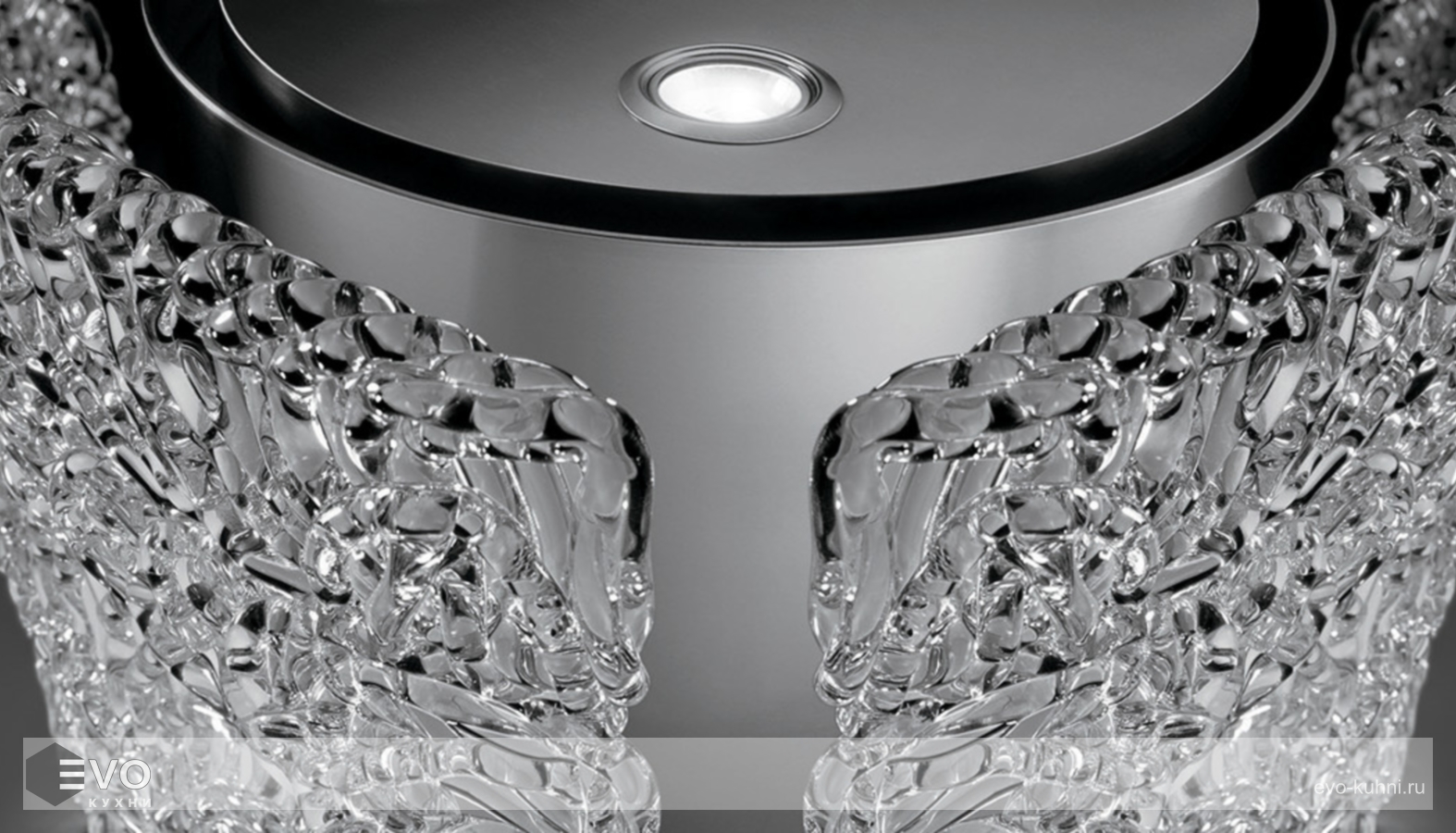 Островная вытяжка FABER NEST (SET) – подвесная вытяжка потолочного монтажа сделана полностью из нержавеющей стали с оригинальным дизайном, повторяющий форму птичьего гнезда за счет элегантных стеклянных панелей. Вытяжка имеет уникальный механизм по технологии UP&DOWN, поднимающий и опускающий вытяжку на необходимую высоту, для эффективного очищения воздуха и освещения. Управляемая с пульта модель плавно плавно опускается ближе к варочной поверхности увеличивая эффективность работы.