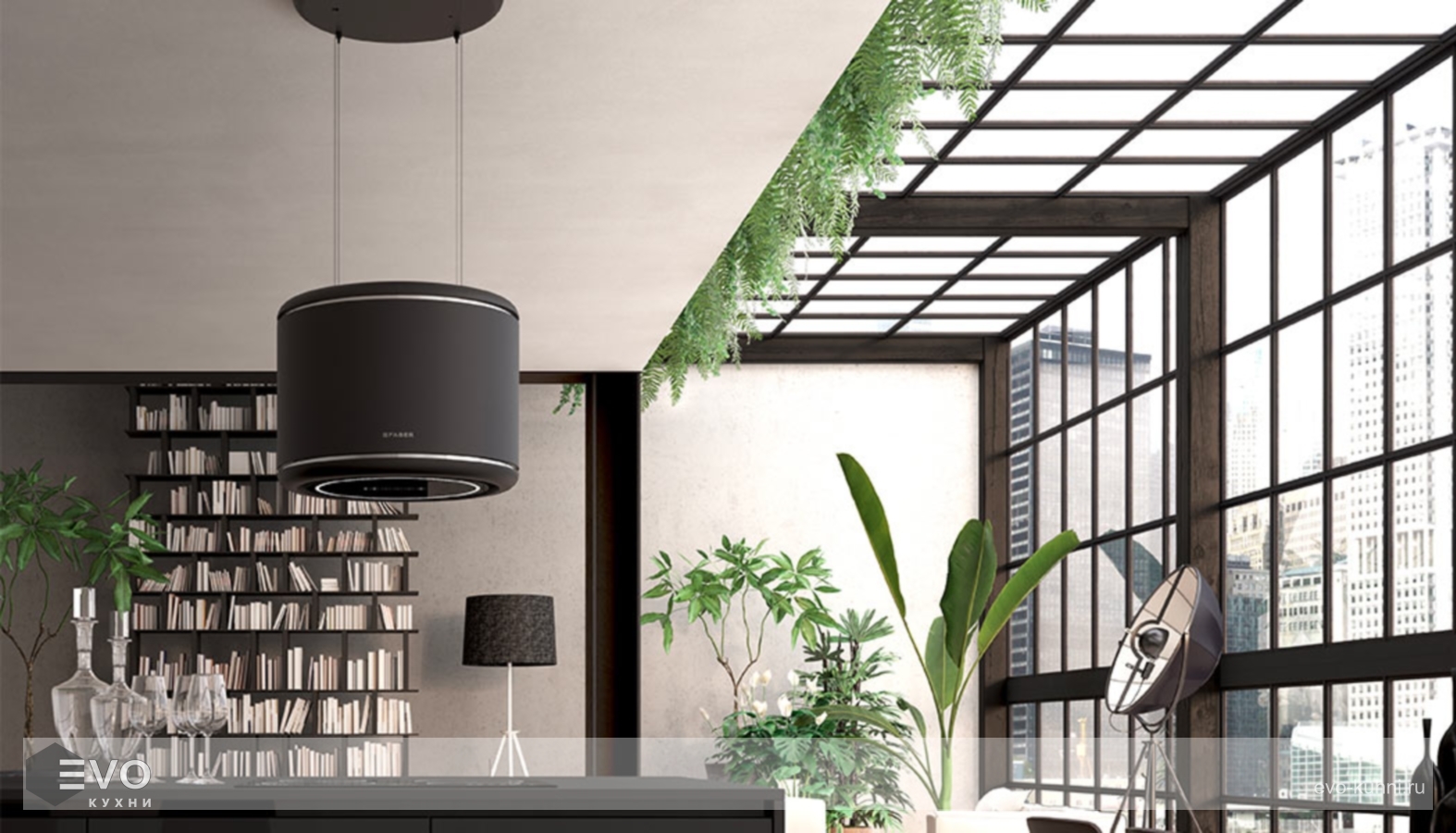 Островная вытяжка FABER ODETTE PLUS BK MATT – подвесная вытяжка потолочного монтажа работает в режиме отвода по технологии AIRLANE и рециркуляции. Помимо основного вентилятора в корпусе вытяжки, в потолок встраивается дополнительный. К нему подсоединяется воздуховод, который скрывается под подвесным потолком и выводит загрязнения в вентиляцию.