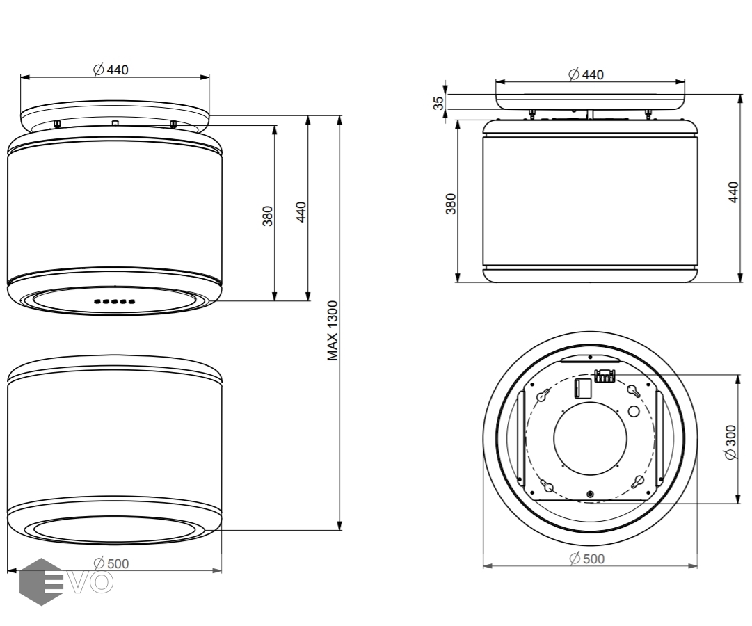 - Высота установки над электрическими варочными поверхностями, мм: 650