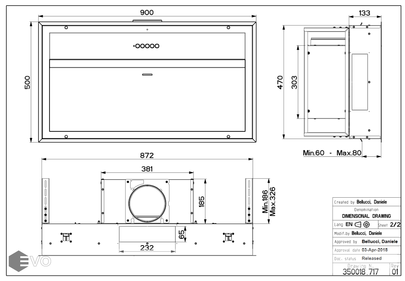 - Высота установки над электрическими варочными поверхностями, мм: 500