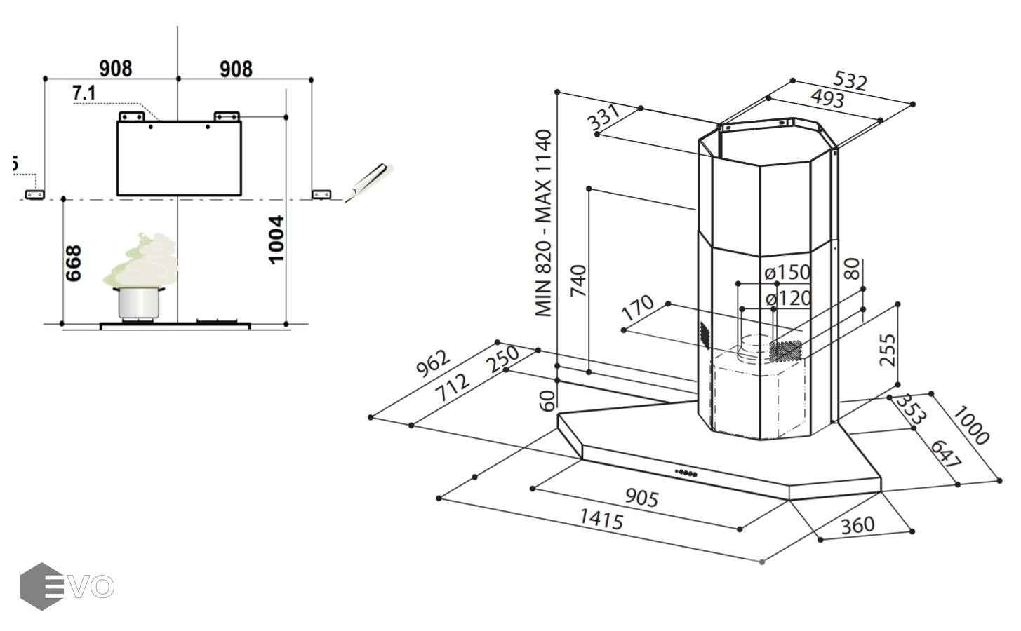 Высокая производительность работы достигается за счет использования в устройстве инновационного мотора серии ENERGY — на 30% больше мощности по сравнению с обычными турбинами. Вытяжка предназначена для работы как в режиме отвода, так и рециркуляции воздуха (угольный фильтр является дополнительным аксессуаром и приобретается отдельно).