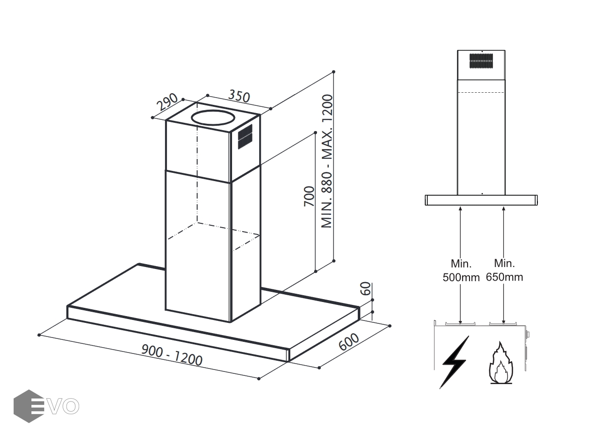 • Высота установки над электрическими варочными поверхностями, мм: 500
