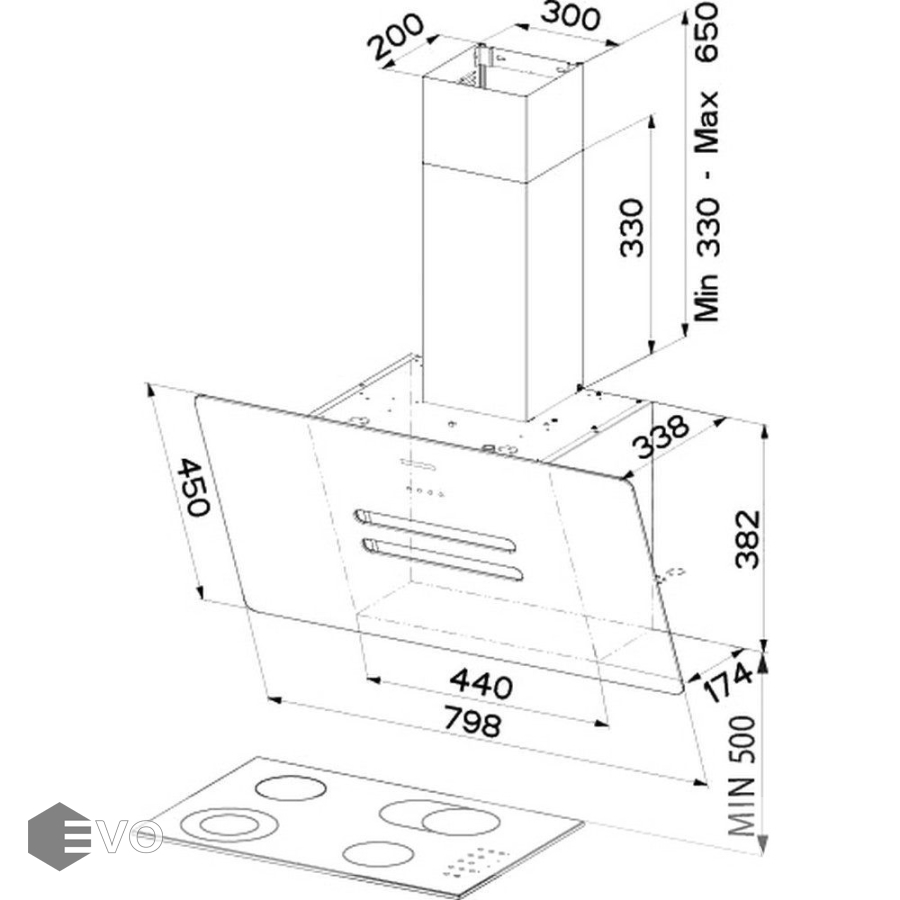 - Тип вытяжки: наклонная