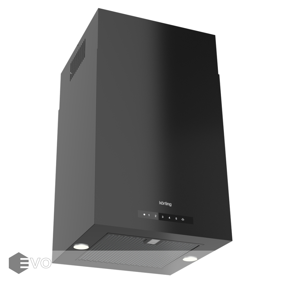 Островная вытяжка Korting KHA 45970 N Cube – вытяжка, имеющая 5 режима работы, позволяет выбрать оптимальный режим в зависимости от необходимости, монтируется к потолку над варочной поверхностью. Как правило их располагают над кухонным островом. Пульт ДУ позволит устанавливать необходимые параметры и режимы работы вытяжки, не вставая из-за обеденного стола. Активировав функцию «таймер», Вы обеспечите автоматическое выключение вытяжки через определенное время. Мигающий светодиод подтверждает, что функция «таймер» активирована и вытяжка отключится автоматически.