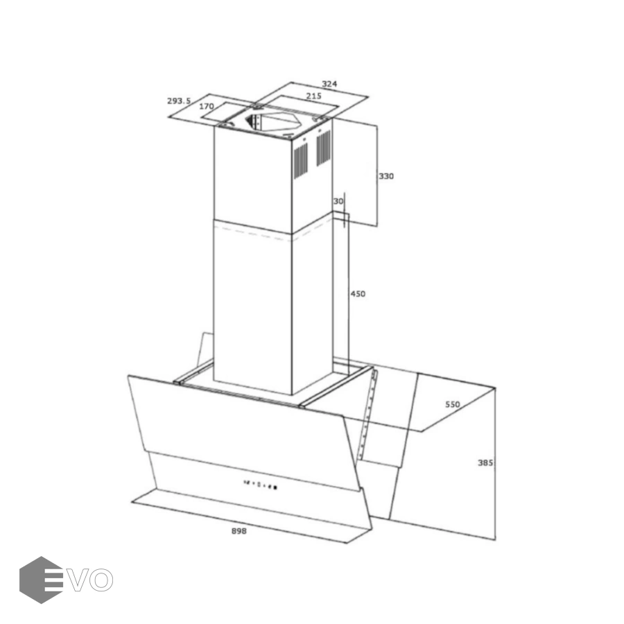 • Высота установки над электрическими варочными поверхностями, мм: 550