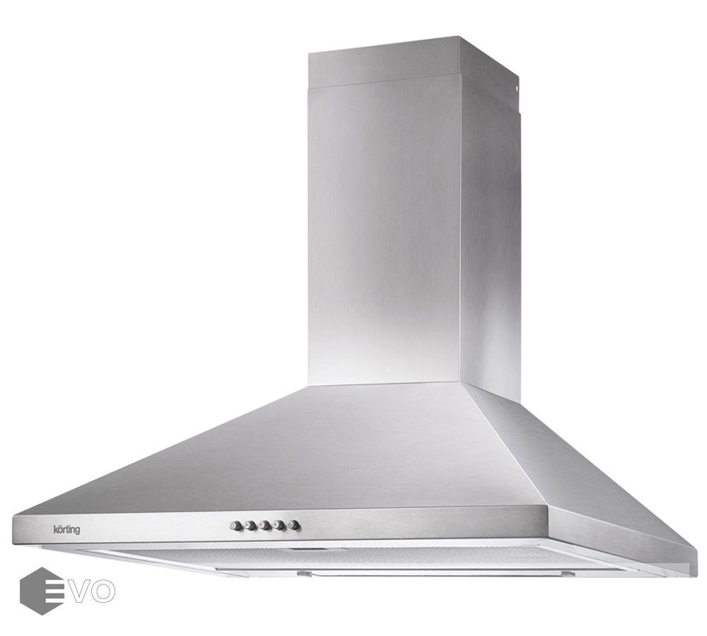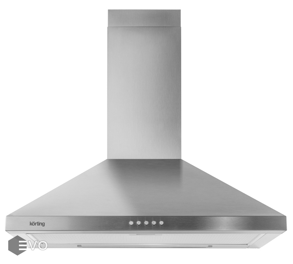 Купольная вытяжка Korting KHC 5431 X – вытяжка шириной 50 см монтируется к стене, из-за сходства с каминными дымоходами подобные модели называют приборами «каминного типа». Управление осуществляется при помощи кнопок, расположенных на передней панели.