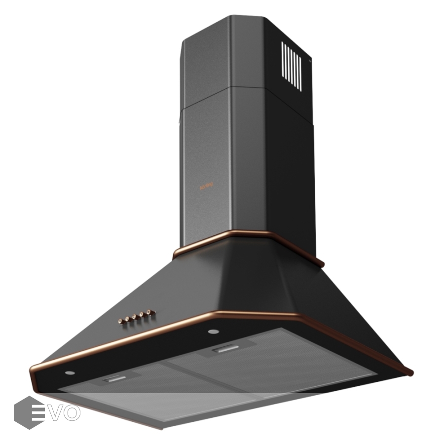 Купольная вытяжка Korting KHC 6839 RCN – купольная модель шириной 60 см с бронзовой фурнитурой. Работает на трех скоростях в режимах отвода и рециркуляции, управление производится при помощи кнопок. Угольные фильтры, предназначенные для использования вытяжки в режиме рециркуляции воздуха, являются сменными. Их необходимо менять на новые через 3–6 месяцев использования, в зависимости от частоты приготовления пищи.