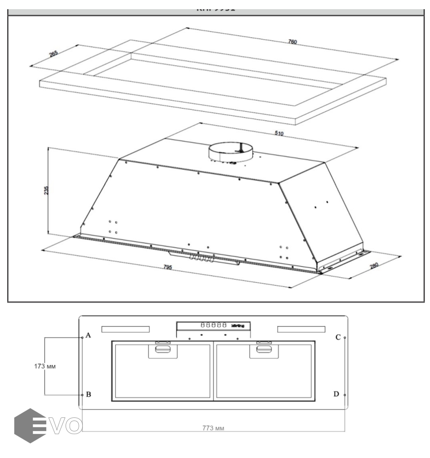 | Тип вытяжки : | Встраиваемая (в шкаф) |
