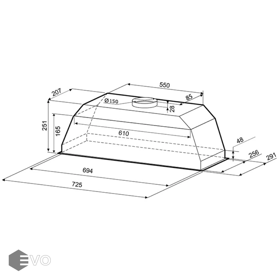 Тип вытяжки : | Встраиваемая (в шкаф) |