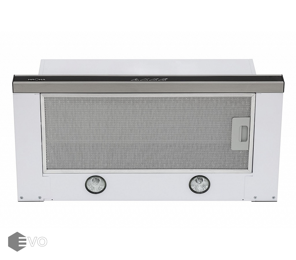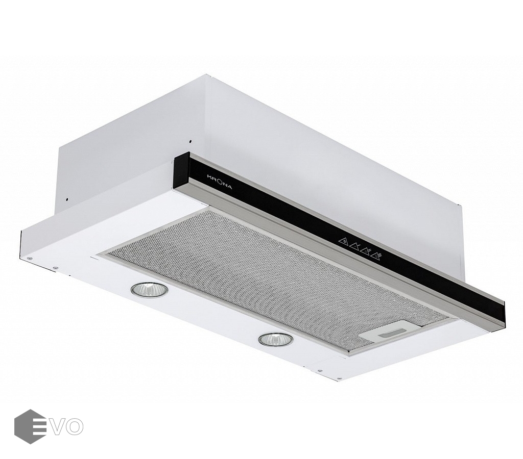Встраиваемая вытяжка KRONA KAMILLA sensor 600 inox (2 мотора) - вытяжка с двумя мощными моторами и современным сенсорным управлением на выдвижной панели с таймером автоотключения на 15 минут. У модели 2 мотора с производительностью 820 куб.м., управление с функцией «Slide Stop» - вытяжка запоминает последнюю выбранную скорость.