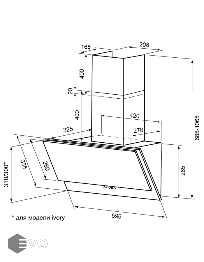 - Высота установки над электрическими варочными поверхностями, см: 65