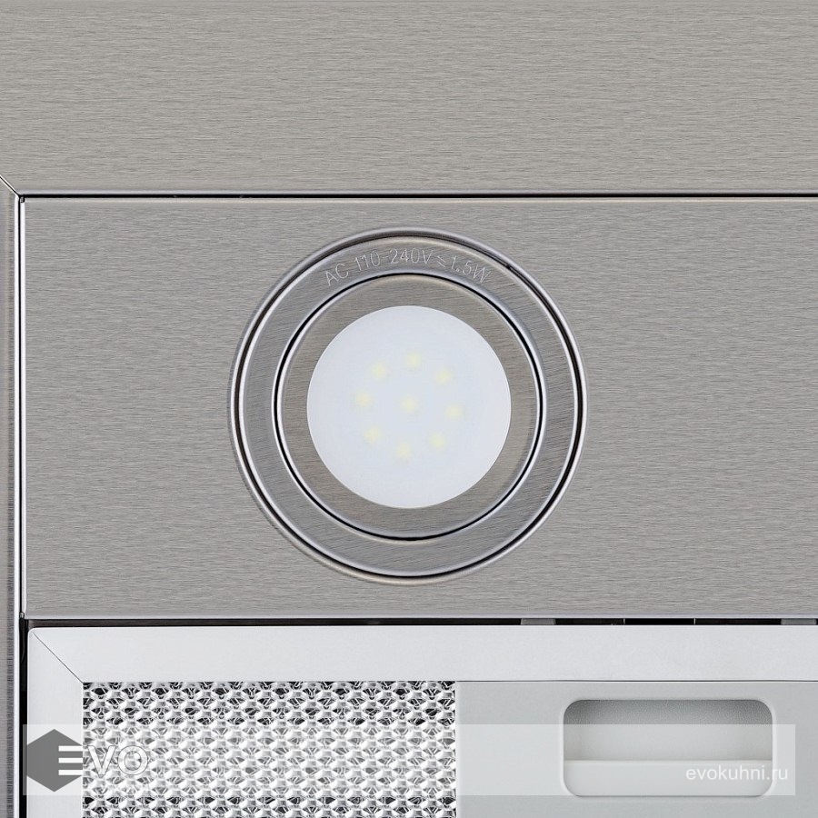 Т-образная вытяжка KRONA RINA 600 inox PB – модель в лаконичном дизайне отлично подойдет для кухни площадью до 11 кв.м. У модели яркое и при этом энергосберегающее освещение. Вытяжка имеет з скорости вентиляции, в зависимости от того на сколько велики испарения при готовке и жарке можно выбрать наиболее подходящую скорость вентиляции. Переключение режимов – кнопочное управление.