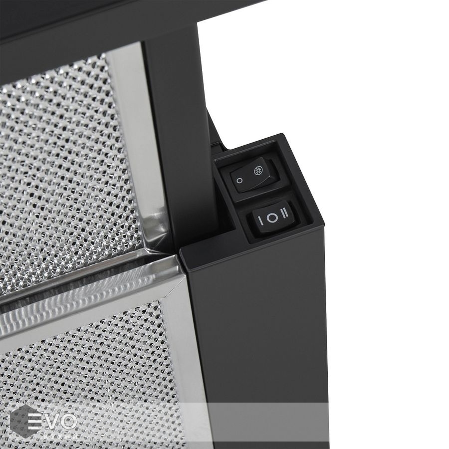 Особенности Телескопическая жировая решетка. Для работы вытяжки необходимо выдвинуть жировую решетку, данная конструктивная особенность создает широкую рабочую поверхность, что позволяет эффективно производить забор воздуха от плиты.
