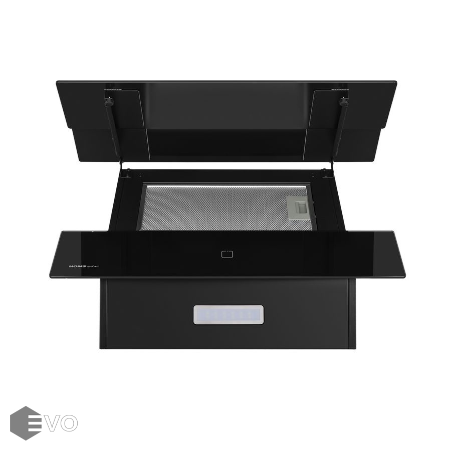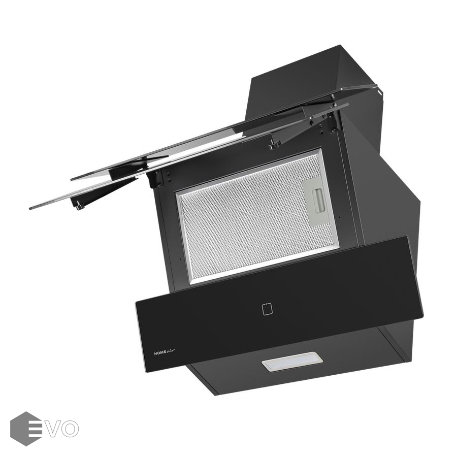Особенности Алюминиевый фильтр находится за каскадом тонированных стекол, что придает вытяжке эстетический вид.