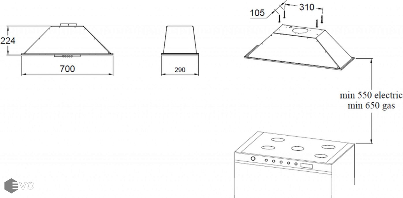 Тип вытяжки : | Встраиваемая (в шкаф) |