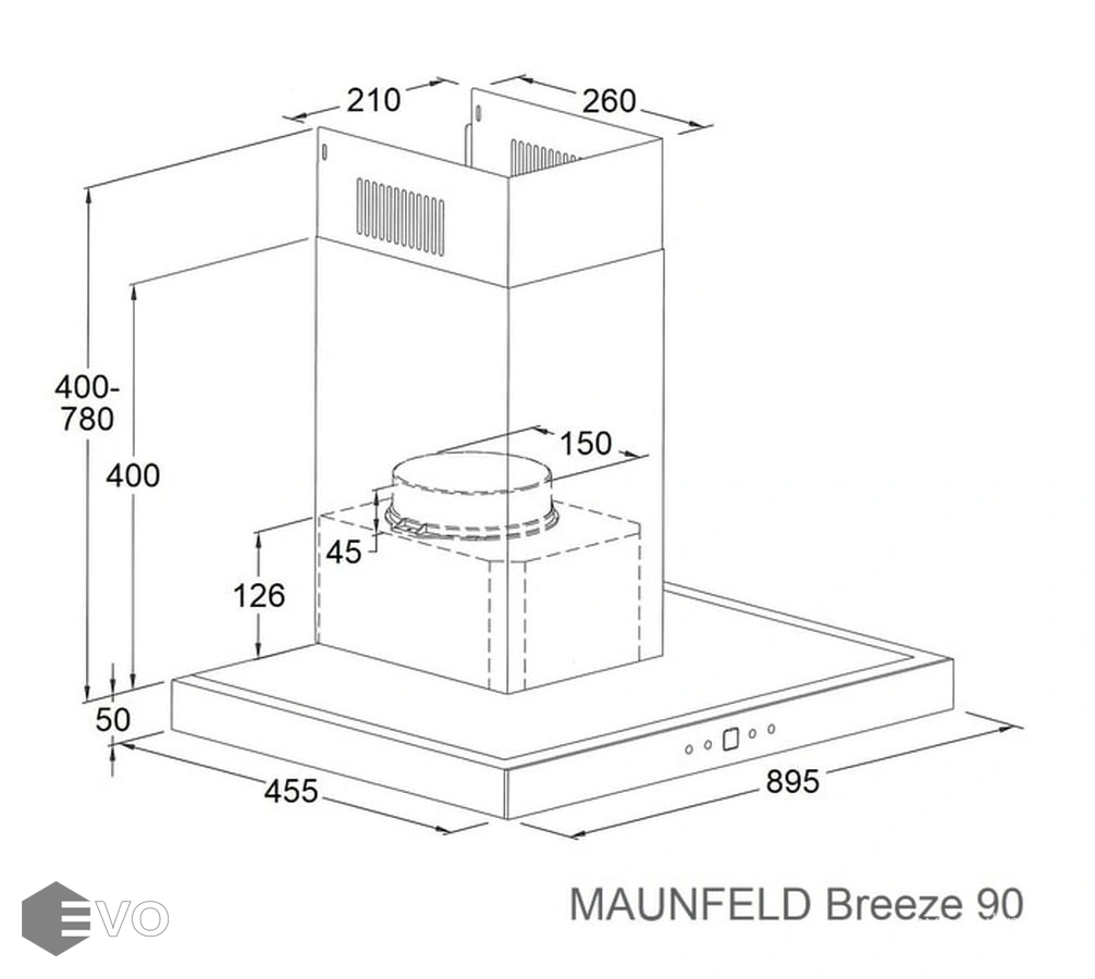 Вытяжка Maunfeld Breeze 90 выполнена из нержавеющей стали и имеет управление в виде сенсорных клавиш и дисплея. Модель может работать в режиме отвода или рециркуляции: в первом случае прибор подключается к вентиляции, во втором понадобится угольный фильтр. Функция «таймер» автоматически отключает вытяжку через 5 минут работы.