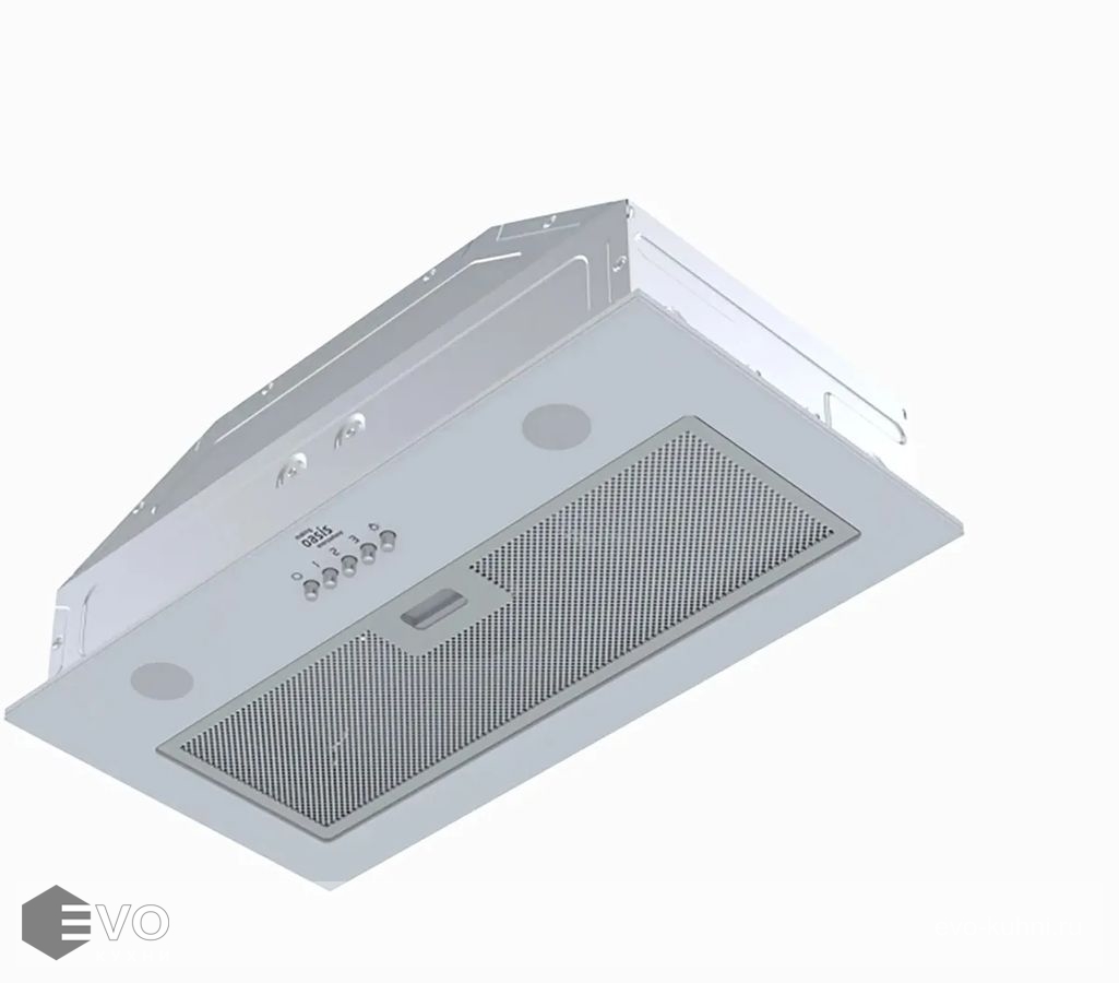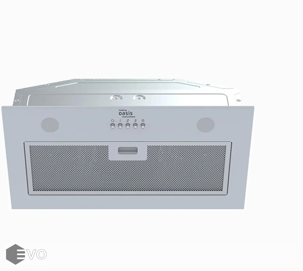 Встраиваемая вытяжка Oasis UNC-50W (FR), выполненная в белом стальном корпусе со стеклянной вставкой, снабжена антивозвратным клапаном, который препятствует попаданию загрязненного воздуха обратно в помещение. Максимальная производительность системы очищения составляет 650 м3/ч.