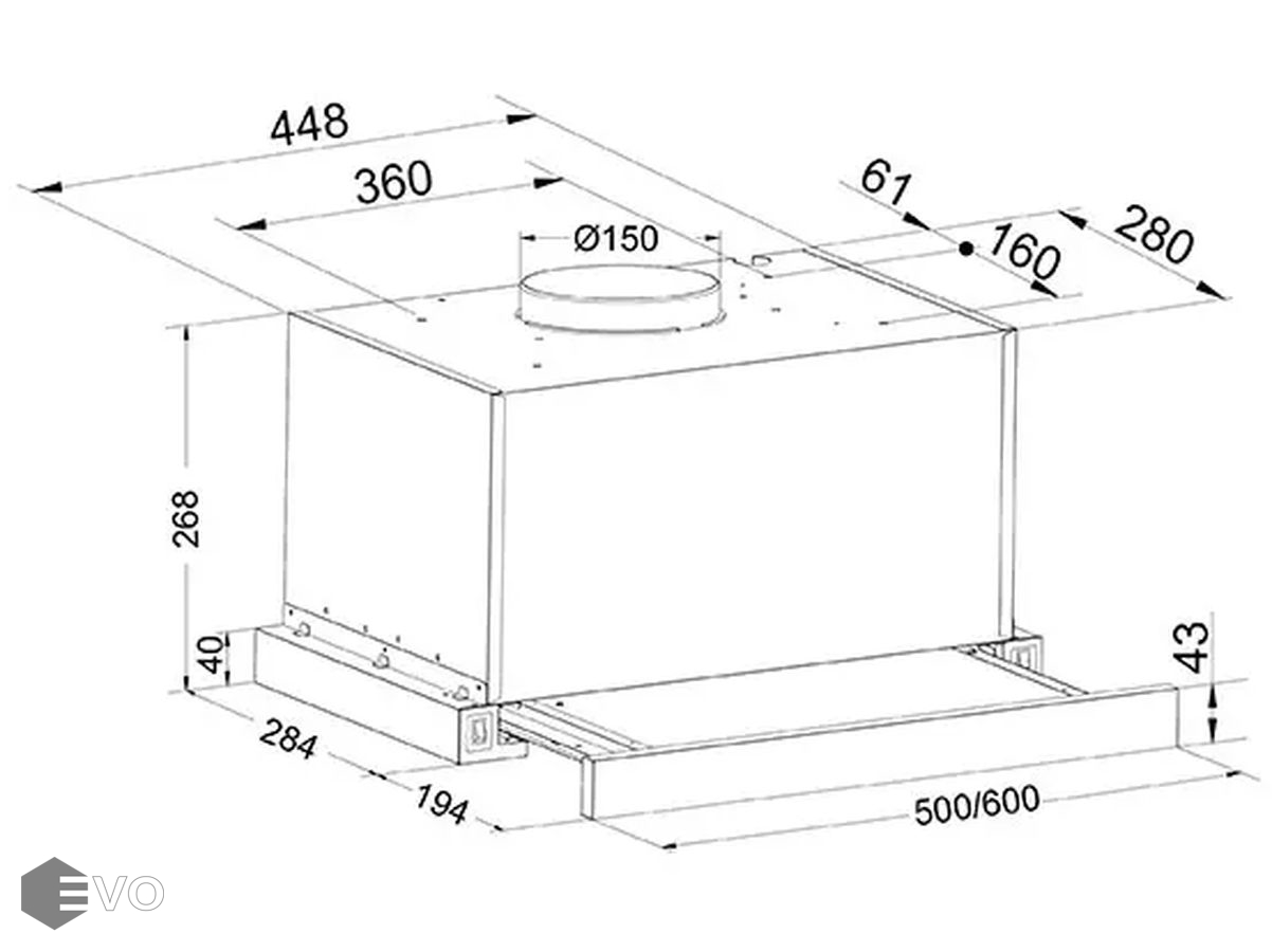 Тип вытяжки : | Встраиваемая (в шкаф) |