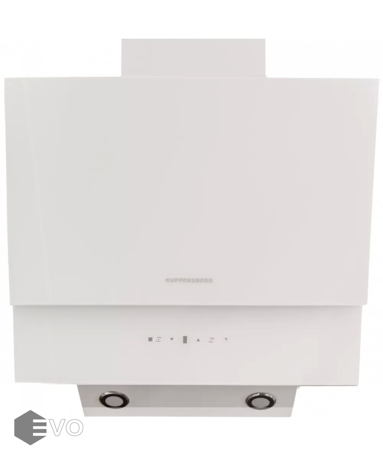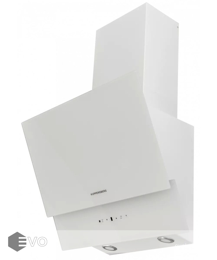 Вытяжка Kuppersberg F 612 W — это строгие линии, наклонная панель, элегантная отделка белым стеклом привлекают к себе внимание. Прибор подойдёт для кухонь площадью до 12 кв. метров. Она обладает максимальной производительностью до 600 м3 воздуха в час — для очистки воздуха в большинстве случаев достаточно включить прибор на первую или вторую скорость. Уровень шума равняется 42 дБ, ее работу Вы даже не заметите.