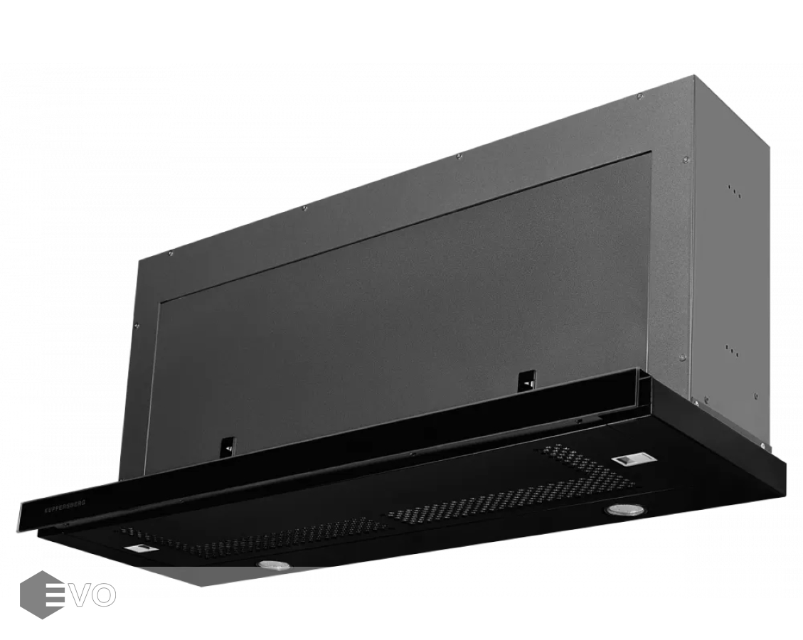 Встраиваемая вытяжка Kuppersberg SLIMBOX 90 GB монтируется в подвесной шкаф, при помощи сенсорной панели производится переключение скоростей. Яркие светодиодные лампы хорошо освещают рабочую поверхность. Есть возможность подключить режим рециркуляции: для этого необходимо дополнительно приобрести угольный фильтр KFP 7.