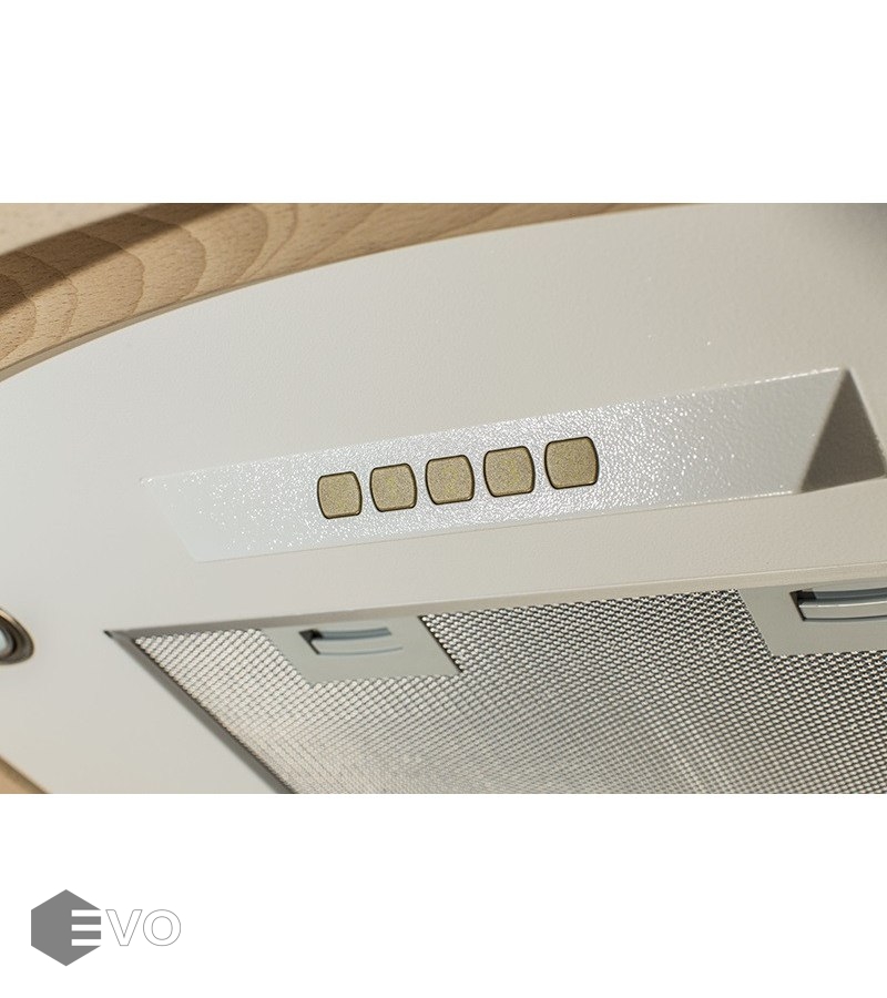 Вытяжка Kuppersberg VILLAGGIO 90 WM B представлена в изысканном цвете «белый муар» с отделкой из бронзы. Регулировка мощности осуществляется на трех уровнях в режимах аспирации воздуха и рециркуляции при помощи кнопочных переключателей. Светодиодные лампы равномерно освещают поверхность и служат в роли дополнительного источника света. Угольный фильтр не входит в комплект поставки.