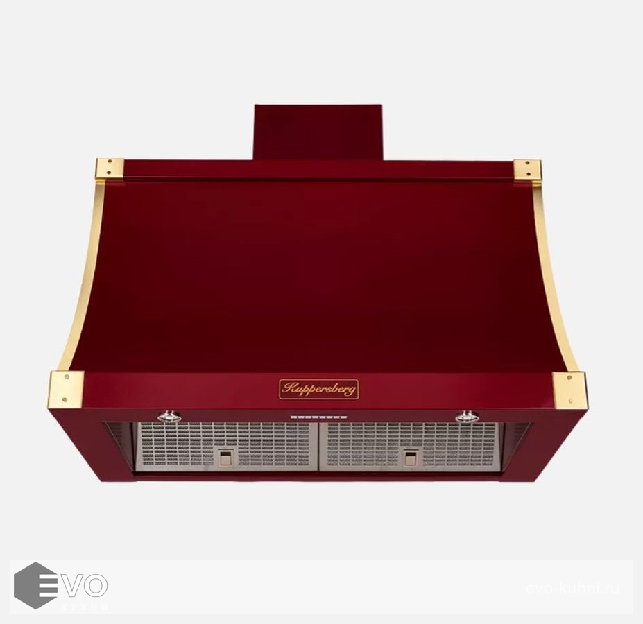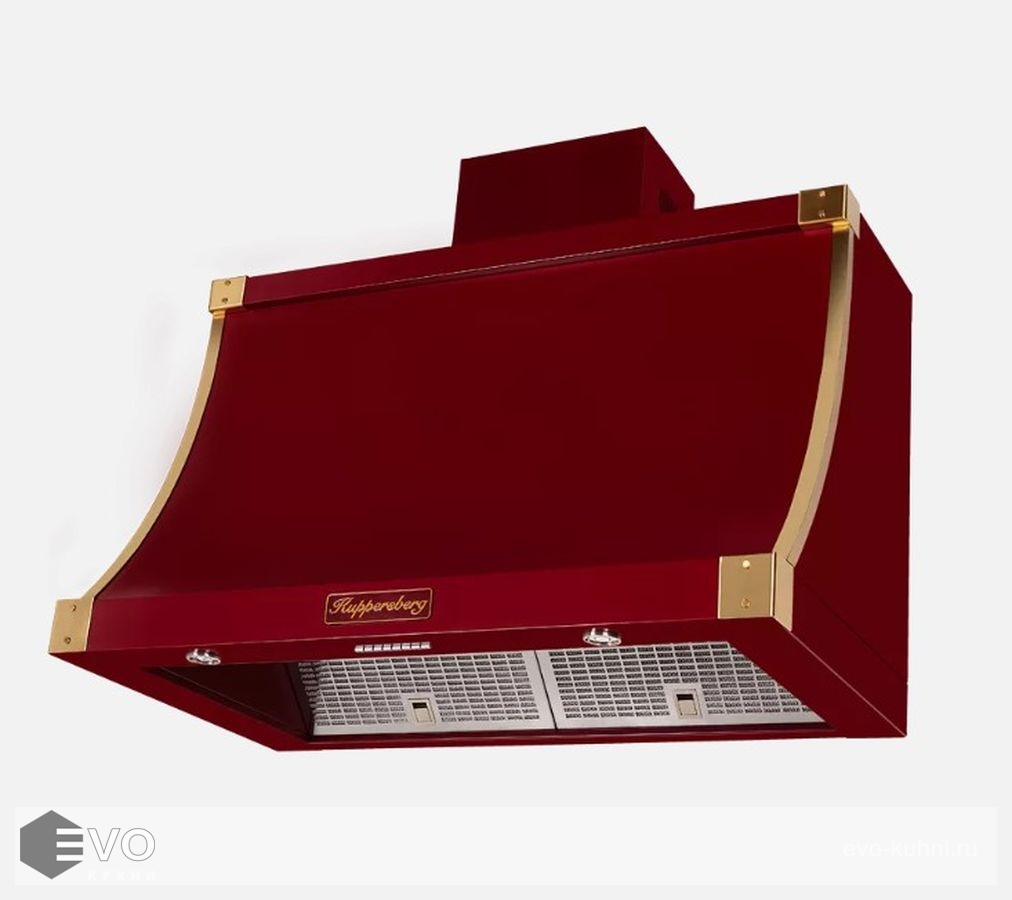 Комфортабельность классического кухонного помещения как нельзя лучше подчеркнет купольная вытяжка T 939 BOR Bronze бордового цвета с бронзовой фурнитурой. Такой агрегат быстро и эффективно уберет посторонние неприятные ароматы и образовавшуюся при пригорании еды копоть.