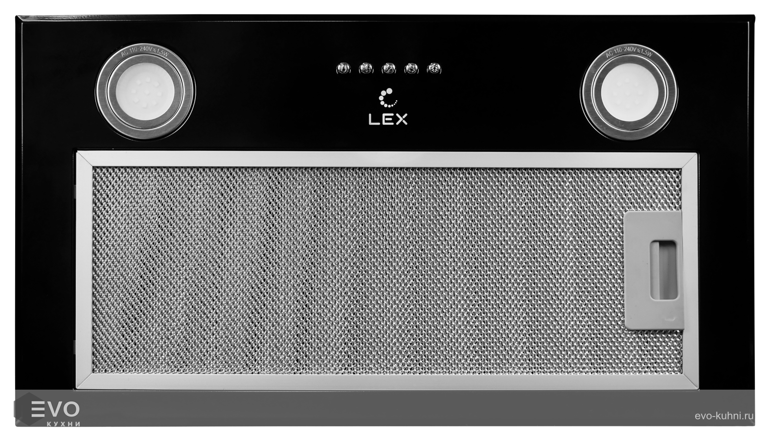 Полновстраиваемая вытяжка LEX GS BLOC P 600 BLACK – вытяжка полностью монтируется в кухонный шкаф, где видимой остается только нижняя панель и лампы подсветки. Модель оснащена LED подсветкой, кнопочным управлением. Кухонная встраиваемая вытяжка незаметна в дизайне и будет гармонично смотреться как в классических, так и скандинавских интерьерах.
