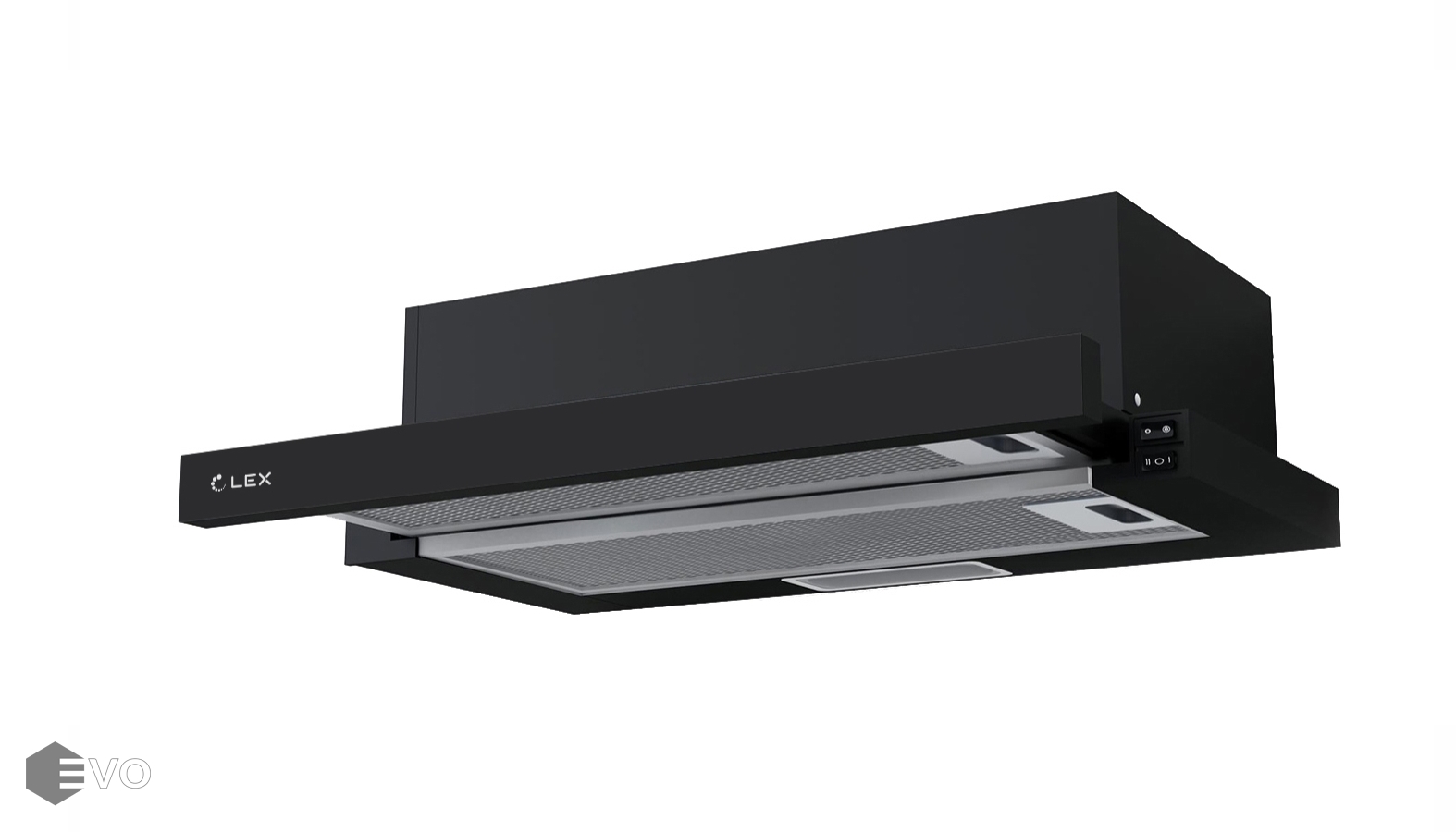 Выдвижная вытяжка LEX HUBBLE 500 BLACK – вытяжка выполнена в современном дизайне и прекрасно дополнит собой любую кухню. Удобное механическое клавишное управление позволяет быстро и легко выбрать нужную из двух скоростей, в зависимости от условий в помещении. Уникальный мотор вытяжки выполнен по технологии IQM (Innovative Quiet Motor), благодаря которому обеспечивается акустический комфорт во время работы на любой скорости.