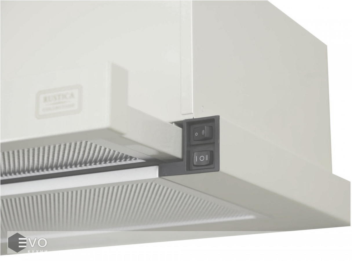 Выдвижная вытяжка LEX HUBBLE 600 IVORY LIGHT (белый антик) – вытяжка выполнена в современном дизайне и прекрасно дополнит собой любую кухню. Удобное механическое клавишное управление позволяет быстро и легко выбрать нужную из двух скоростей, в зависимости от условий в помещении. Уникальный мотор вытяжки выполнен по технологии IQM (Innovative Quiet Motor), благодаря которому обеспечивается акустический комфорт во время работы на любой скорости.