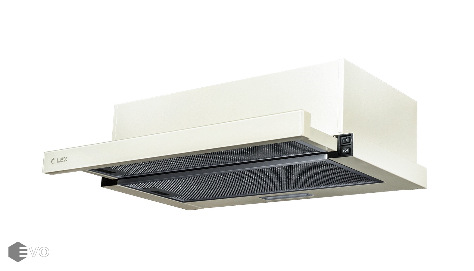 Выдвижная вытяжка LEX HUBBLE G 600 IVORY LIGHT (белый антик) – вытяжка выполнена в современном дизайне и прекрасно дополнит собой любую кухню. Удобное механическое клавишное управление позволяет быстро и легко выбрать нужную из двух скоростей, в зависимости от условий в помещении. Уникальный мотор вытяжки выполнен по технологии IQM (Innovative Quiet Motor), благодаря которому обеспечивается акустический комфорт во время работы на любой скорости.