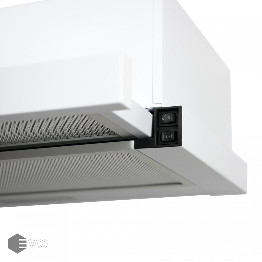 Выдвижная вытяжка LEX HUBBLE G 600 WHITE – вытяжка выполнена в современном дизайне и прекрасно дополнит собой любую кухню. Удобное механическое клавишное управление позволяет быстро и легко выбрать нужную из двух скоростей, в зависимости от условий в помещении. Уникальный мотор вытяжки выполнен по технологии IQM (Innovative Quiet Motor), благодаря которому обеспечивается акустический комфорт во время работы на любой скорости.