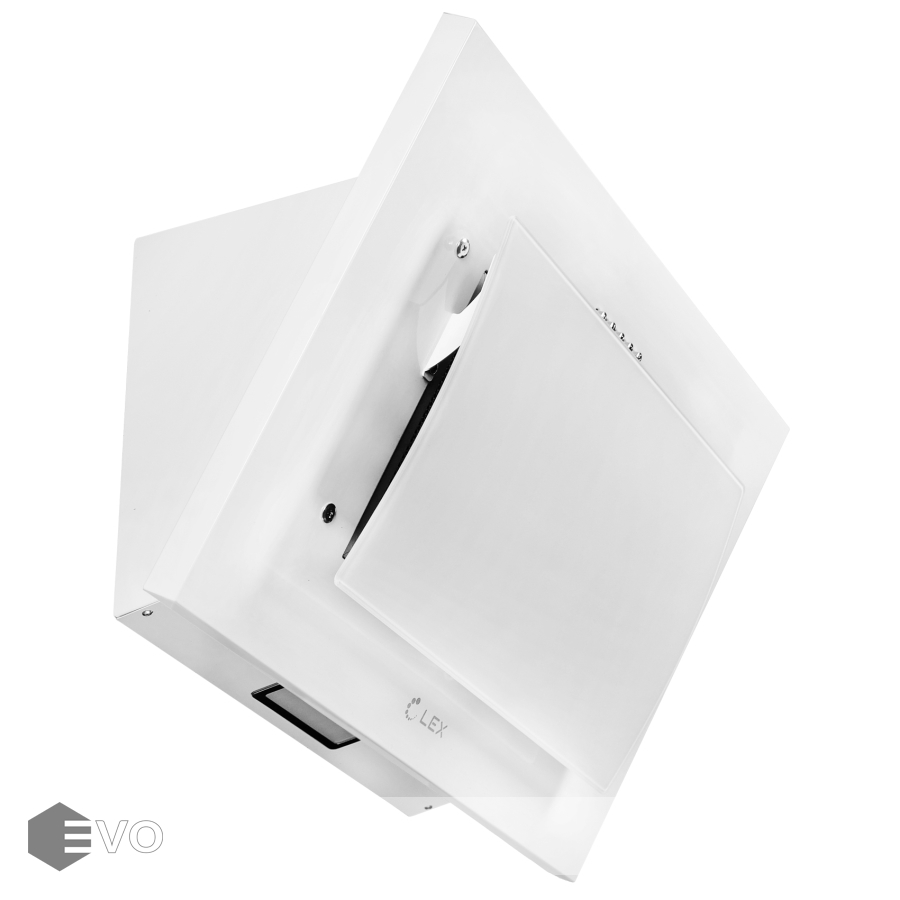 Наклонная вытяжка LEX MIKA C 600 WHITE – оснащена кнопочной системой управления, выполнена в корпусе из окрашенной стали с фасадом из закаленного стекла. Стекло на модели Mika C изогнуто в форме паруса. Прибор может функционировать как в режиме отвода воздуха в вентиляционную шахту, так и в режиме рециркуляции. Система периметрального всасывания обеспечивает качественное очищение воздуха и сниженный уровень шума. Уникальный мотор вытяжки выполнен по технологии IQM (Innovative Quiet Motor), благодаря которому обеспечивается акустический комфорт во время работы на любой скорости.