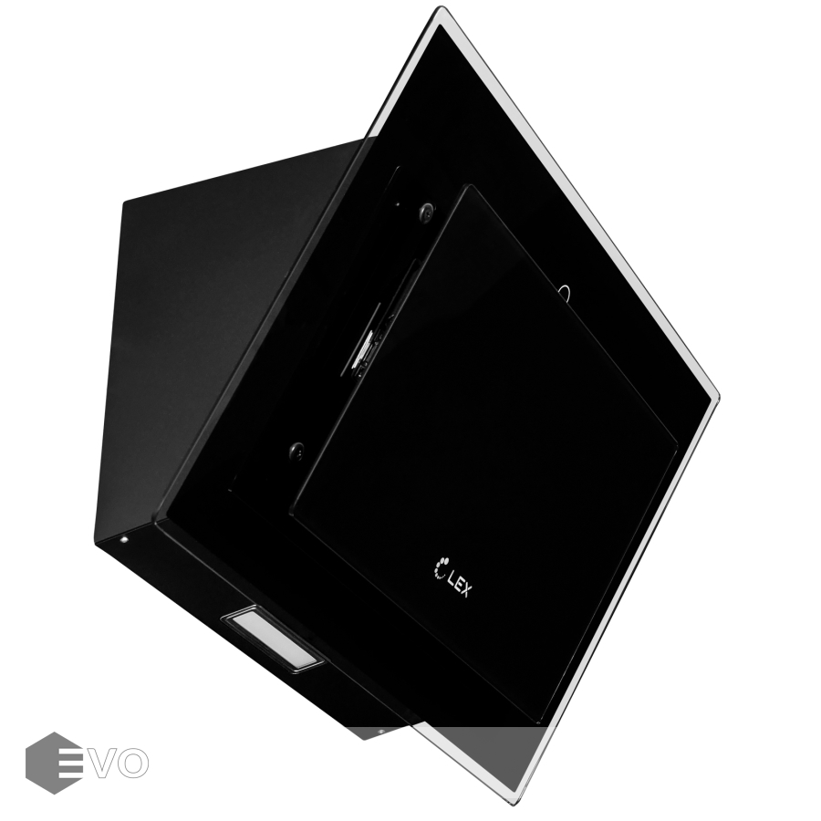 Наклонная вытяжка LEX MIKA GS 600 BLACK – в модели GS кнопки управления заменены на скрытую сенсорную панель Fantom, которая становится видна на корпусе только во время работы вытяжки. Вытяжка выполнена в корпусе из окрашенной стали с фасадом из закаленного стекла. Прибор может функционировать как в режиме отвода воздуха в вентиляционную шахту, так и в режиме рециркуляции.