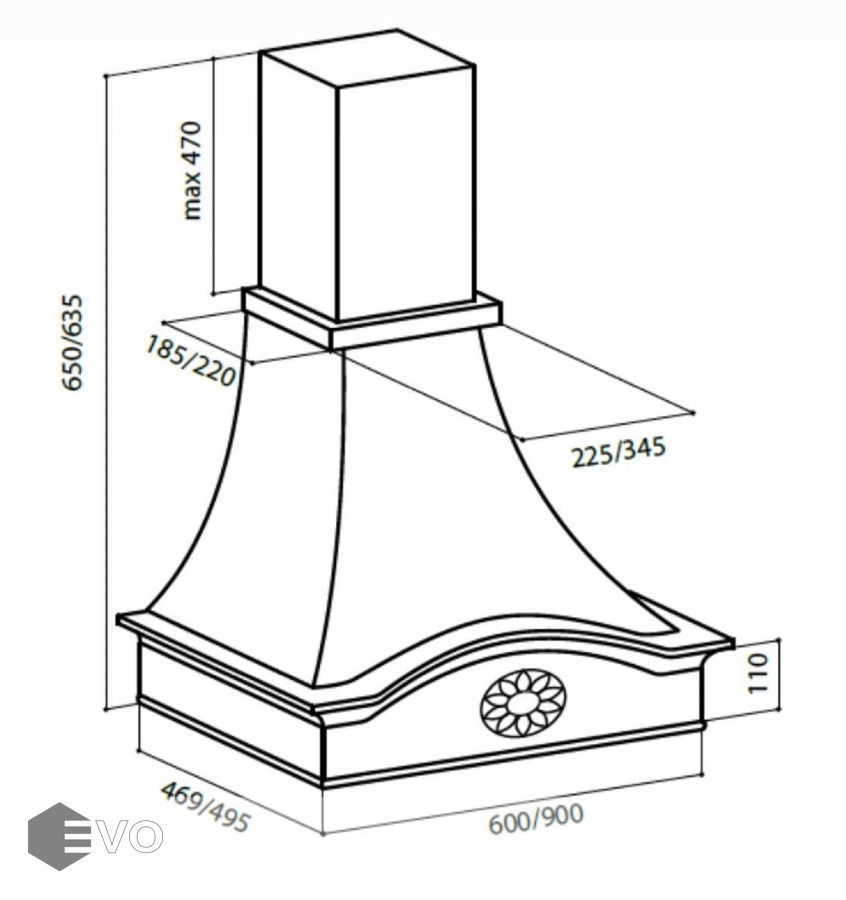 - Высота установки над электрическими варочными поверхностями, мм: 650