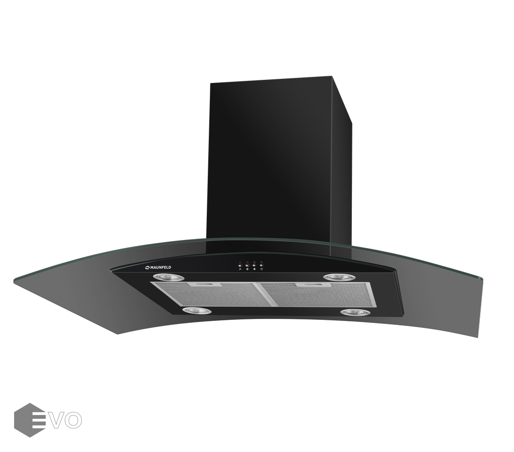 Островная вытяжка MAUNFELD Ancona PlusA Isla 90 черный – вытяжка шириной 90 см представлена в черном металлическом корпусе с отделкой из черного изогнутого стекла. Может работать в двух режимах: прямой отвод в вентиляционное отверстие или использование сменного угольного фильтра. Кнопочное управление, расположенное на панели освещения, позволяет выбрать одну из 3-х скоростей работы вентилятора и включить освещение.