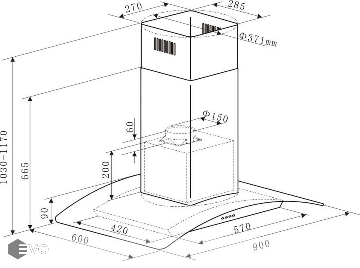 • Высота установки над электрическими варочными поверхностями, мм: 650