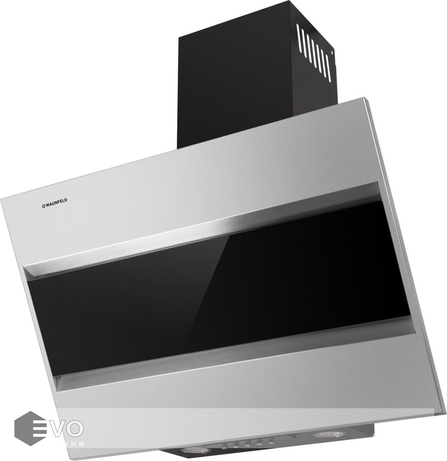 Наклонная вытяжка MAUNFELD Bridge 60 нержавеющая сталь\черное стекло – вытяжка шириной 60 см – оптимальное решение для кухонь площадью до 35 кв.м. Работает в двух режимах – отвода (при подключении к системе вентиляции) и рециркуляции (при использовании сменного угольного фильтра).