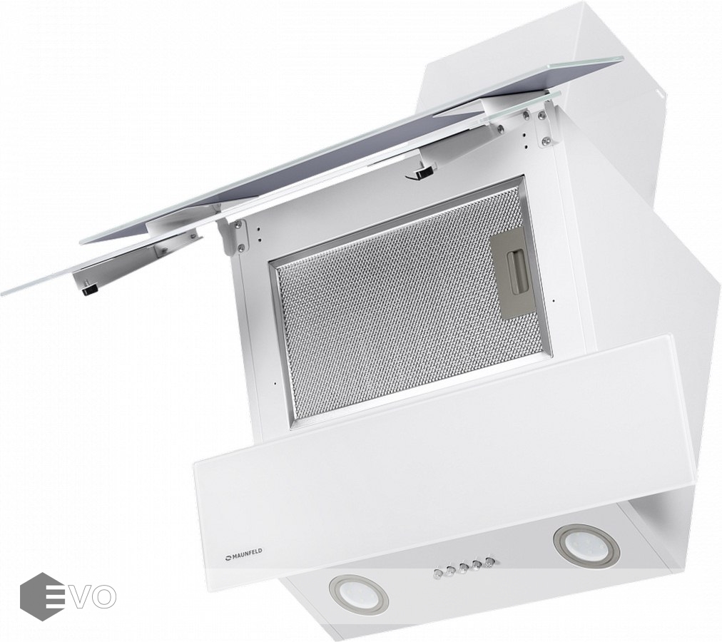 Наклонная вытяжка MAUNFELD Cascada Push 60 белый – это оптимальное решение для большой кухни (до 20 кв.м). Монтируется на стену над поверхностью плиты и работает в двух режимах: отвода (при подключении к системе вентиляции) и рециркуляции (при использовании сменного угольного фильтра). Кнопочное управление находится на панели освещения и позволяет выбрать одну их 3-х скоростей вентилятора и включить освещение - 2 LED-источника по 1 Вт каждый.