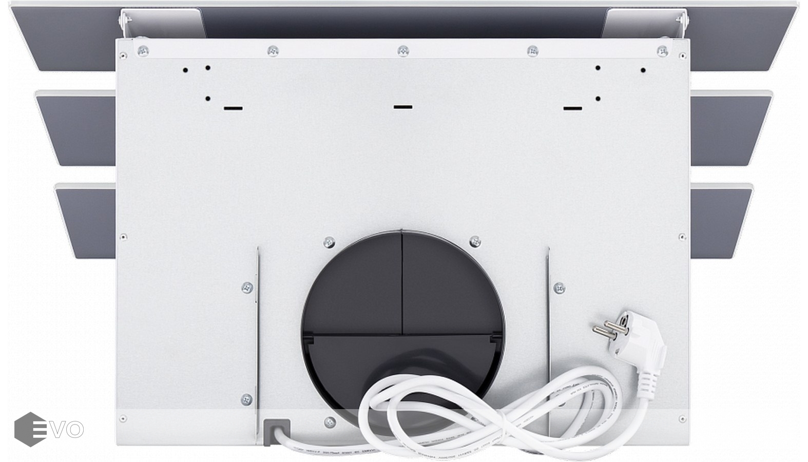 Корпус выполнен из нержавеющей стали. Дизайнерский фасад представляет собой каскад из 3-х сверхпрочных закаленных глянцевых стекол в цвет корпуса. Благодаря такому расположению панелей, принцип периметрического втягивания воздуха действует особенно эффективно. Две верхние откидные панели скрывают алюминиевый  многослойный жироулавливающий фильтр, который легко снимается и полностью разбирается, что сильно упрощает его чистку.
