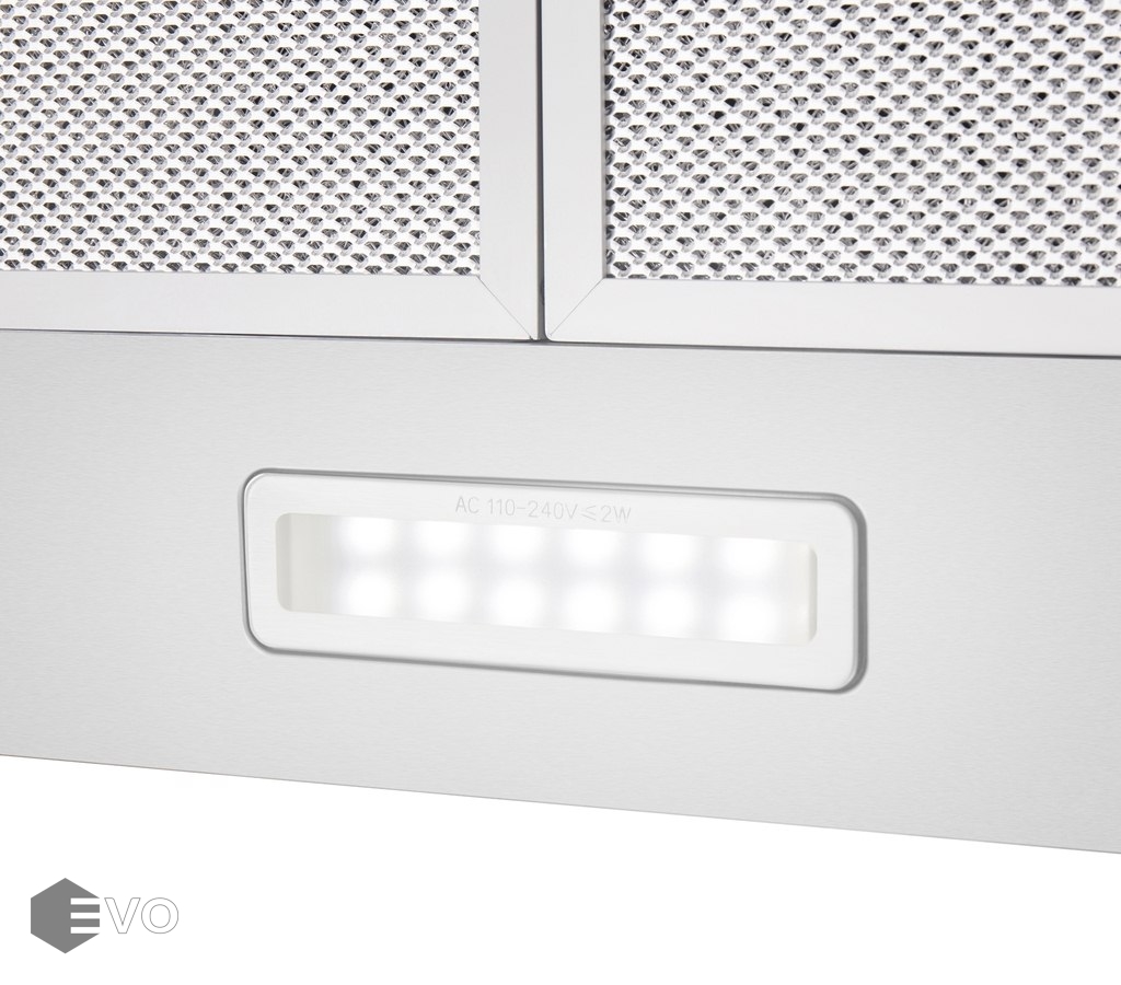 Кнопочная система управления, находящаяся на правой части фронтальной панели, позволяет выбрать один их 3-х режимов работы и включить освещение. Для подсветки варочной поверхности используется 1 светодиодный источник мощностью 2 Вт.
