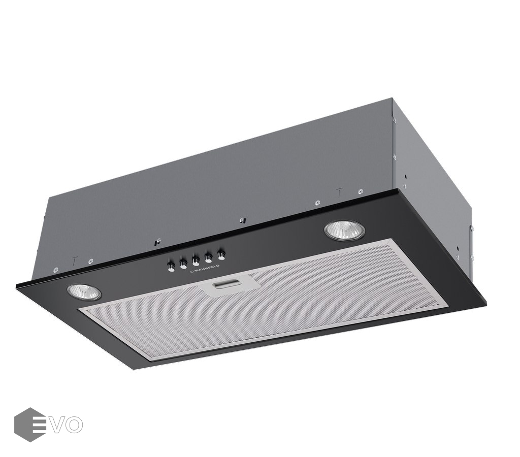 Полновстраиваемая вытяжка MAUNFELD Crosby Singl 50 черный – встраиваемая кухонная вытяжка шириной 50 см подходит для кухни площадью до 30 кв.м., встраивается в навесной шкаф над поверхностью плиты. Работает в двух режимах – отвода (при подключении к системе вентиляции) и рециркуляции (при использовании сменного угольного фильтра).