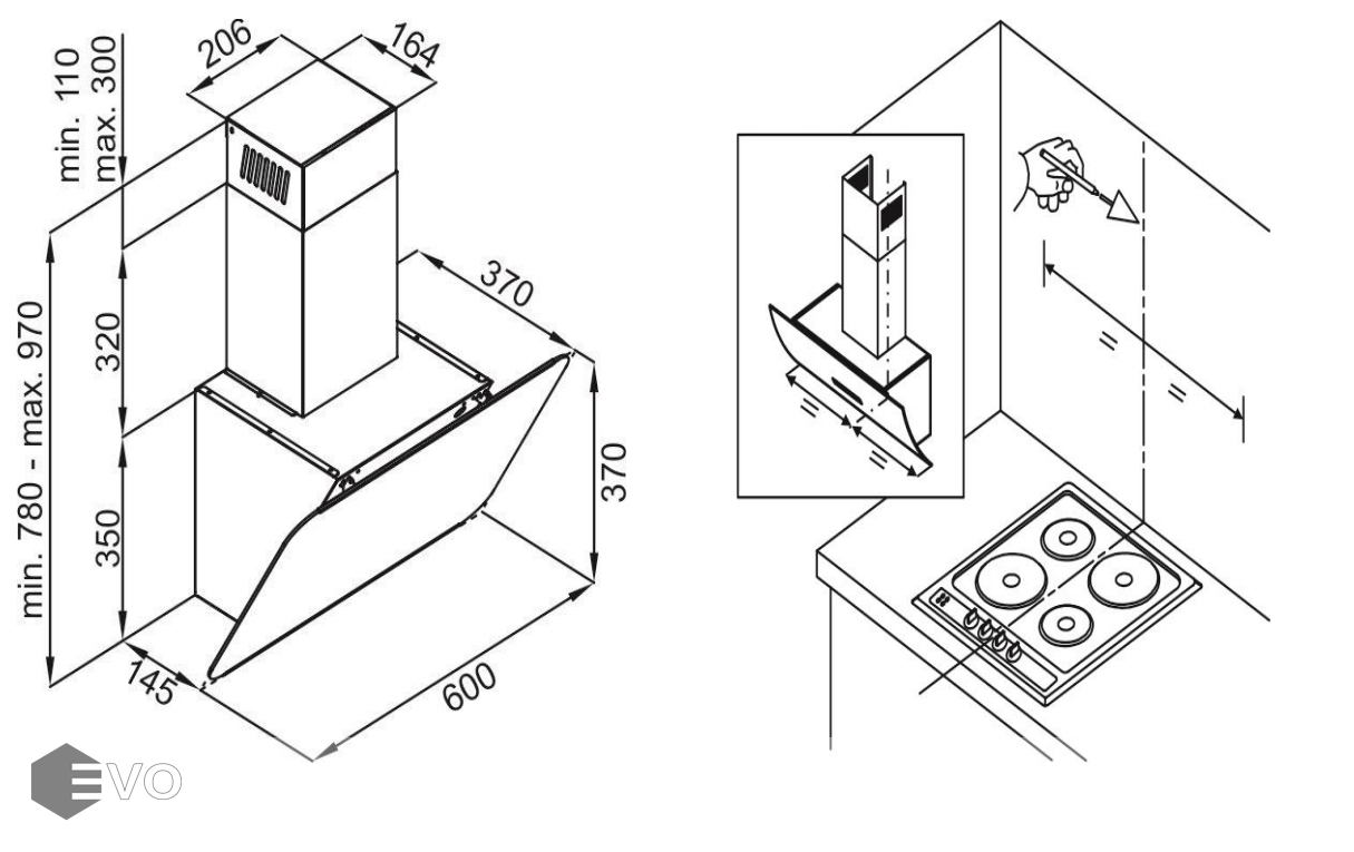- Высота установки над электрическими варочными поверхностями, мм: 550