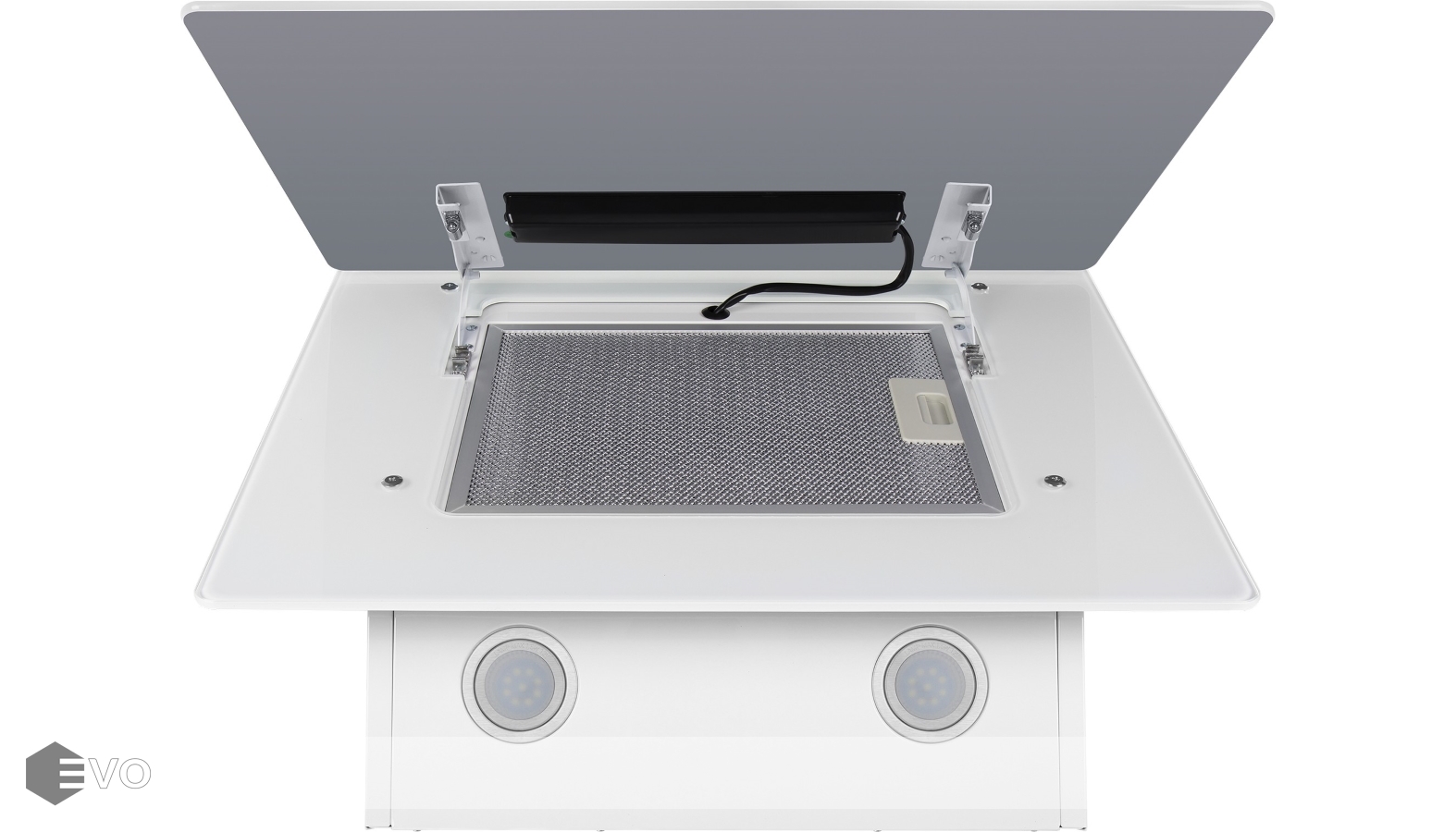 Корпус выполнен из нержавеющей стали. Фронтальная часть состоит из 2-х панелей из глянцевого закаленного стекла цвета корпуса, легко очищаются и долго сохраняют свой первозданный вид. За передней откидной панелью скрыт легко снимающийся металлический жироулавливающий фильтр. Загрязненный воздух втягивается по периметру откидной панели.