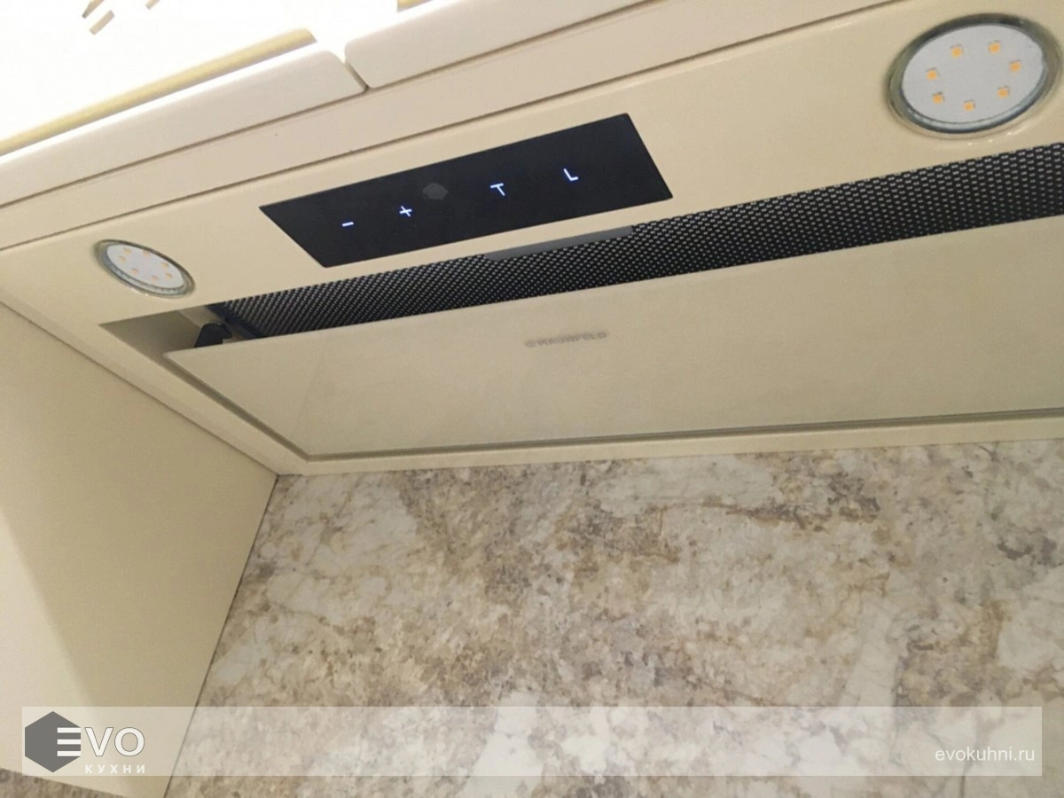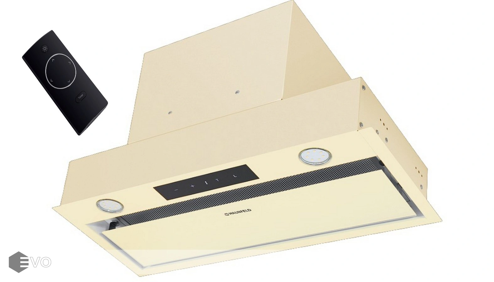 Полновстраиваемая вытяжка MAUNFELD Fantasy Light 60 бежевый – встраиваемая кухонная вытяжка шириной 60 см – прекрасное решение для кухни площади до 50 кв.м. Модель монтируется в навесной шкаф над поверхностью плиты. Работает в двух режимах – отвода (при подключении к системе вентиляции) и рециркуляции (при использовании сменного угольного фильтра). Пульт дистанционного управления идет в комплекте.