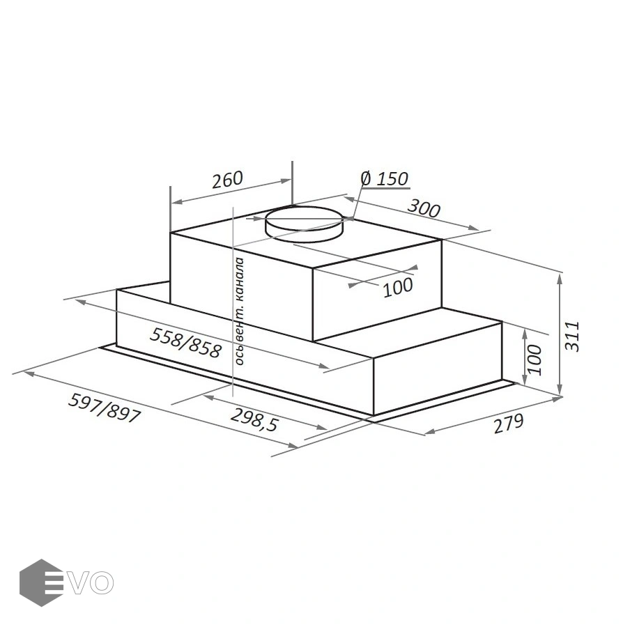 - Диаметр воздуховода, мм: 150