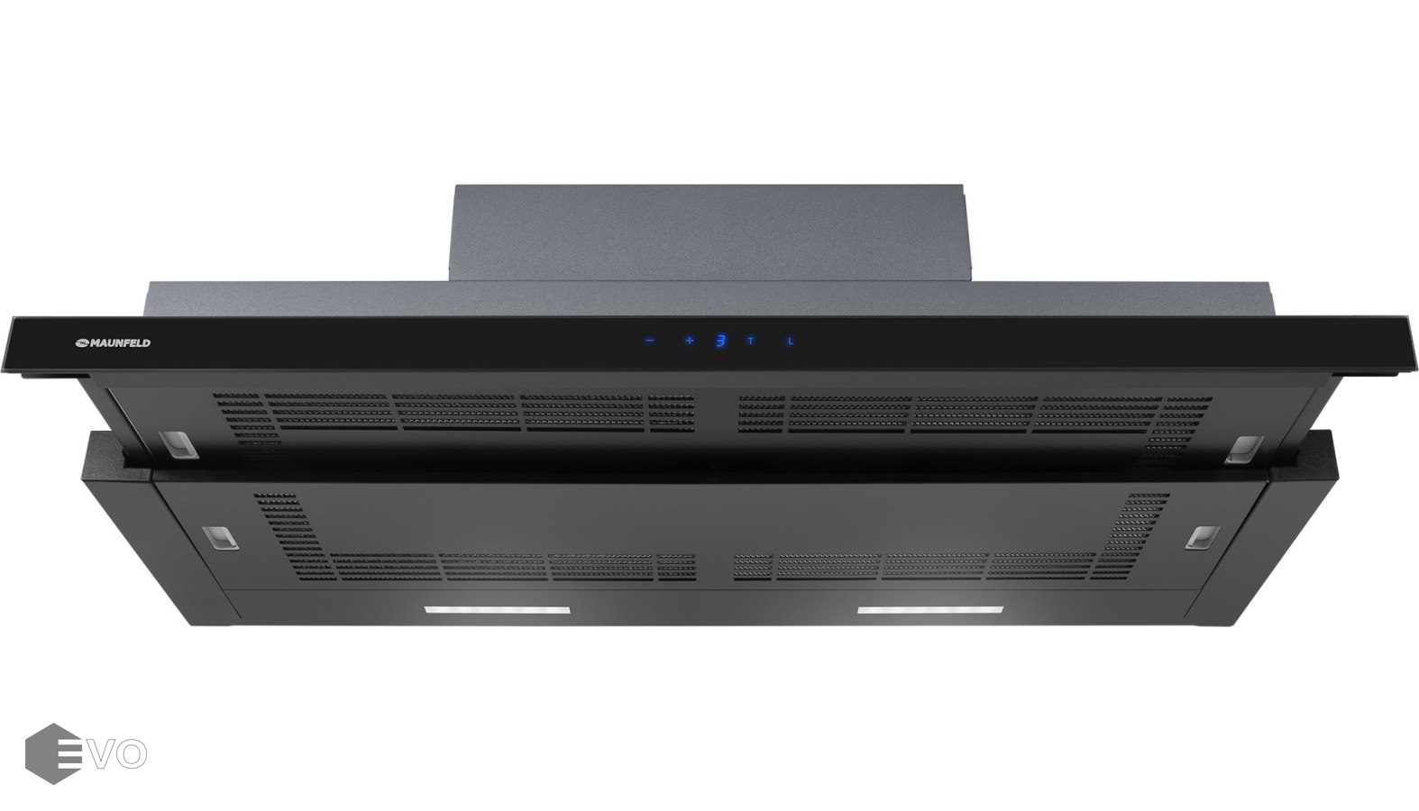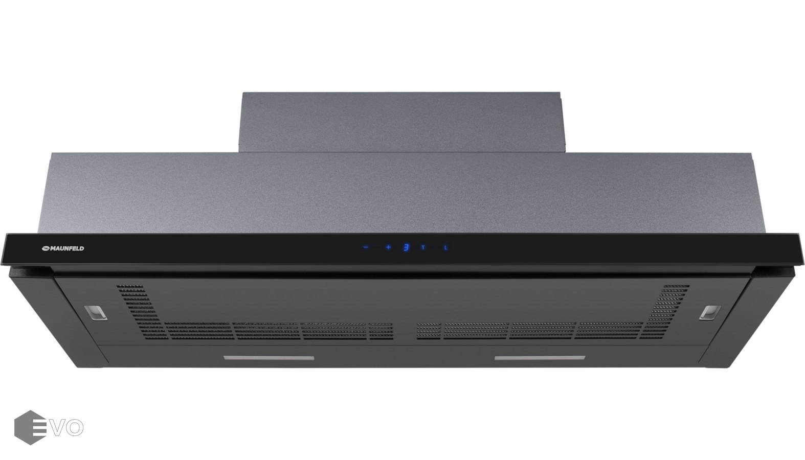 Выдвижная вытяжка MAUNFELD Galaxy 90 черный – телескопическая кухонная вытяжка с шириной 90 см благодаря выдвижному козырьку может эффективно очищать загрязненный воздух на в кухне очень большой площади (до 50 кв.м). Модель встраивается в навесной шкаф над поверхностью плиты. Работает в 2-х режимах – отвода (при подключении к системе вентиляции) и рециркуляции (при использовании сменного угольного фильтра).