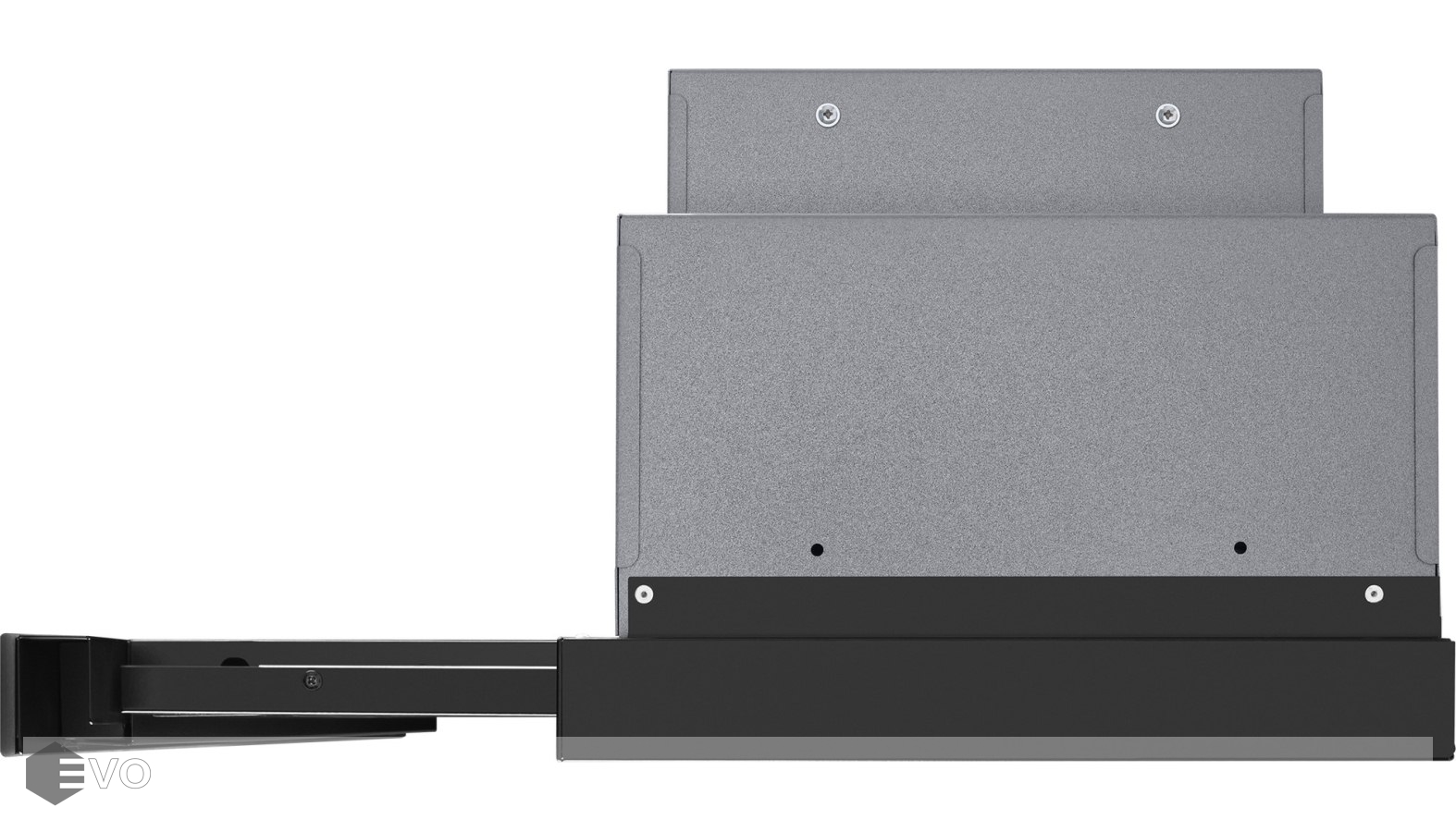 Фасад выдвижной панели выполнен из закаленного глянцевого стекла, основная рабочая и выдвижная панель изготовлены из нержавеющей стали с эмалированным покрытием. Откидные панели сделаны с вентиляционными прорезями и скрывают за собой 2 легко вынимаемых многослойных алюминиевых жироулавливающих фильтра. Корпус сделан из нержавеющей стали.